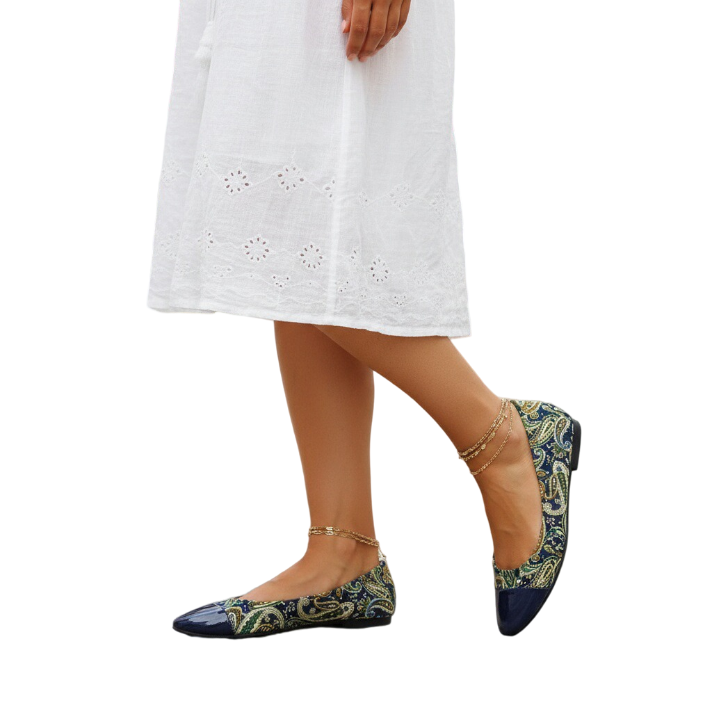 Acești balerini cu broderie în stil etnic, prezintă un imprimeu unic care te va face să ieși în evidență din mulțime. Se potrivesc mai multor stiluri și se pot asorta ușor oricărei ținute.