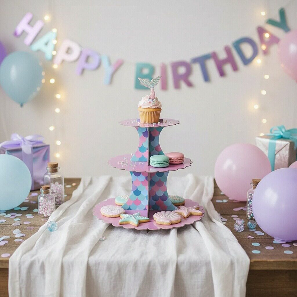 Etajera din carton cu 3 nivele pentru prajituri ' Sirena ' 2260-8