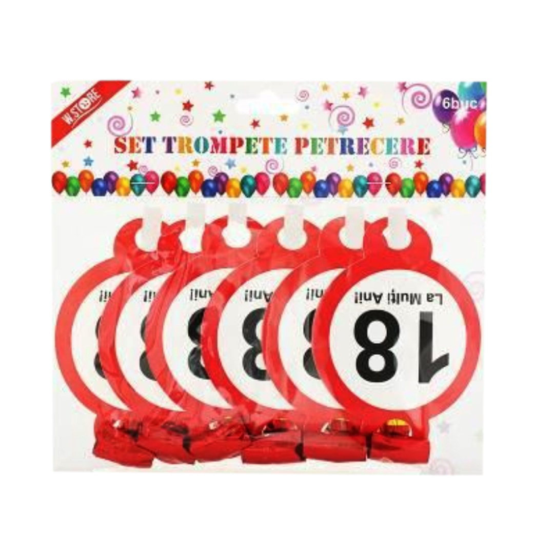 Set 6 trompete pentru party ' La Multi Ani! 18 ' 063565