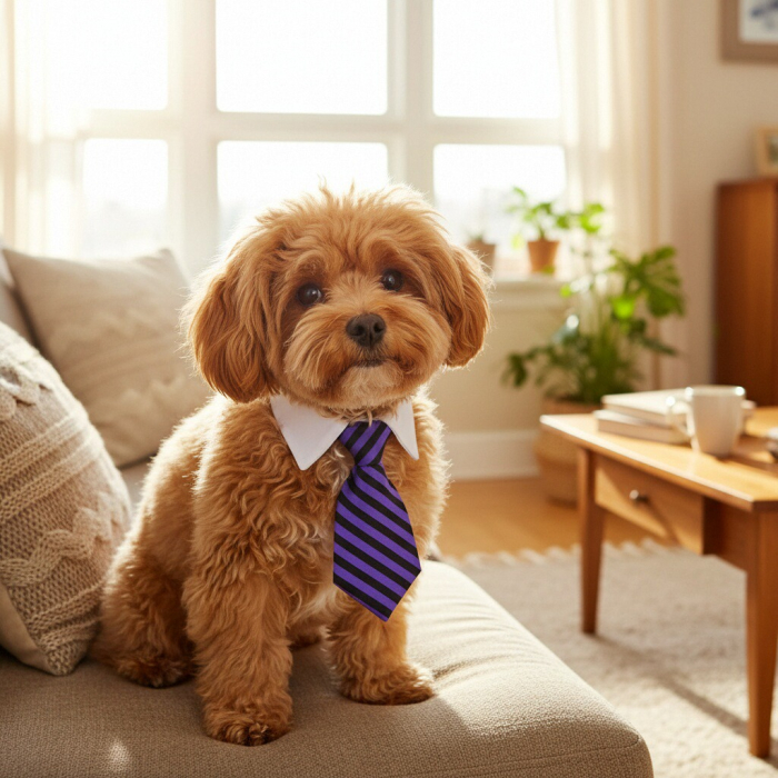 Fa-ti animalutul de companie mai elegant cu o cravata formala cu guler fals. Cravata este confectionata din poliester. Inchiderea este simpla datorita curelei Velcro. Acest accesoriu vestimentar este potrivit pentru animalele de companie de talie mica si mijlocie.