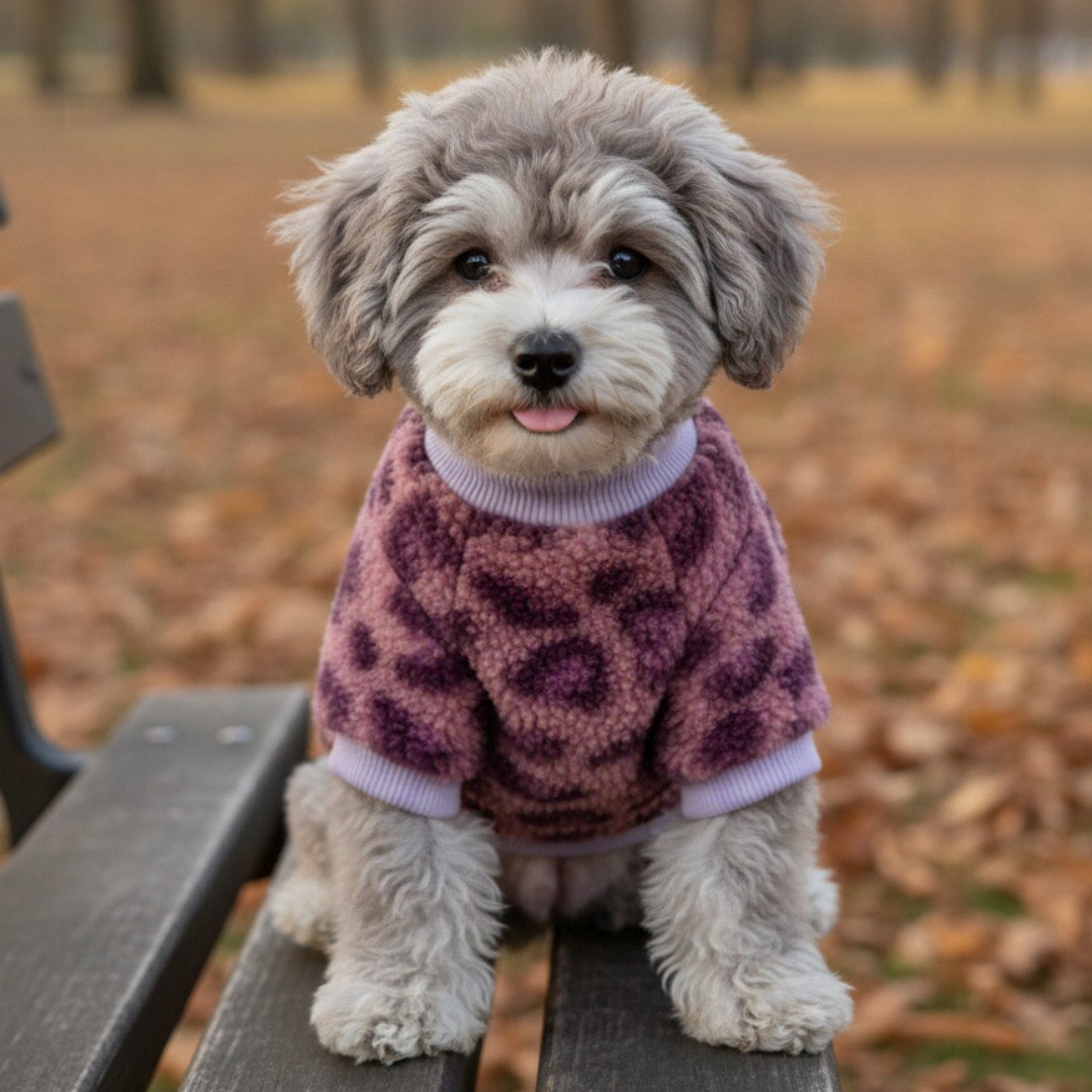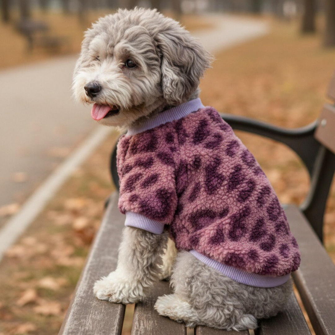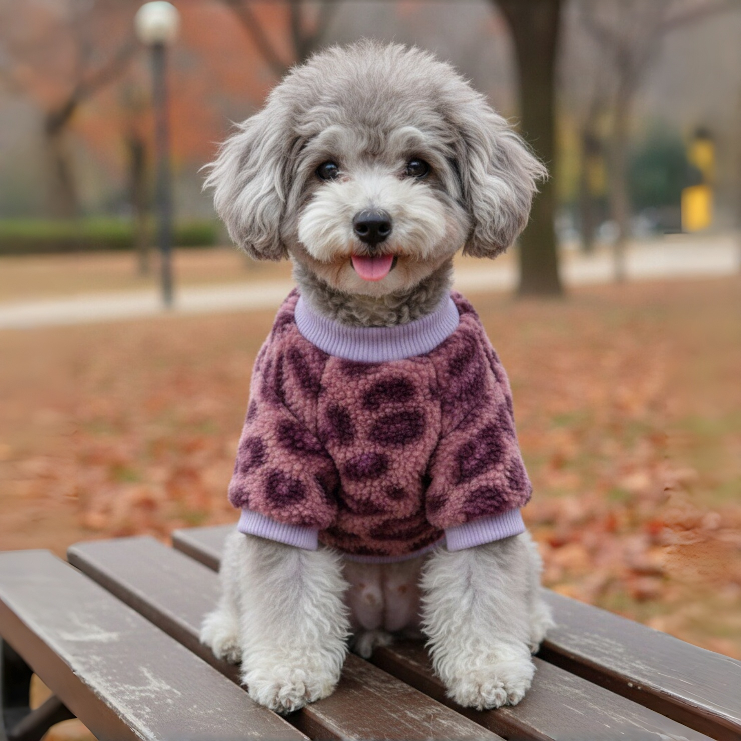 • Material: Fabricata dintr-un material pufos si moale (lana), bluza ofera caldura si confort in sezonul rece, pastrand cainele tau calduros si confortabil in timpul plimbarilor.
