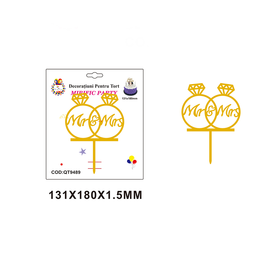 Decoratiune pentru tort ' Mr & Mrs ' 18 x 13 cm QT9489auriu