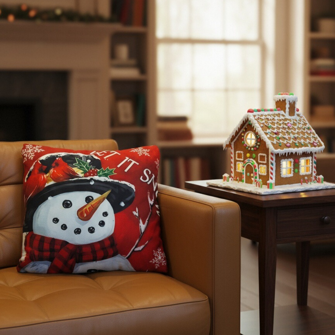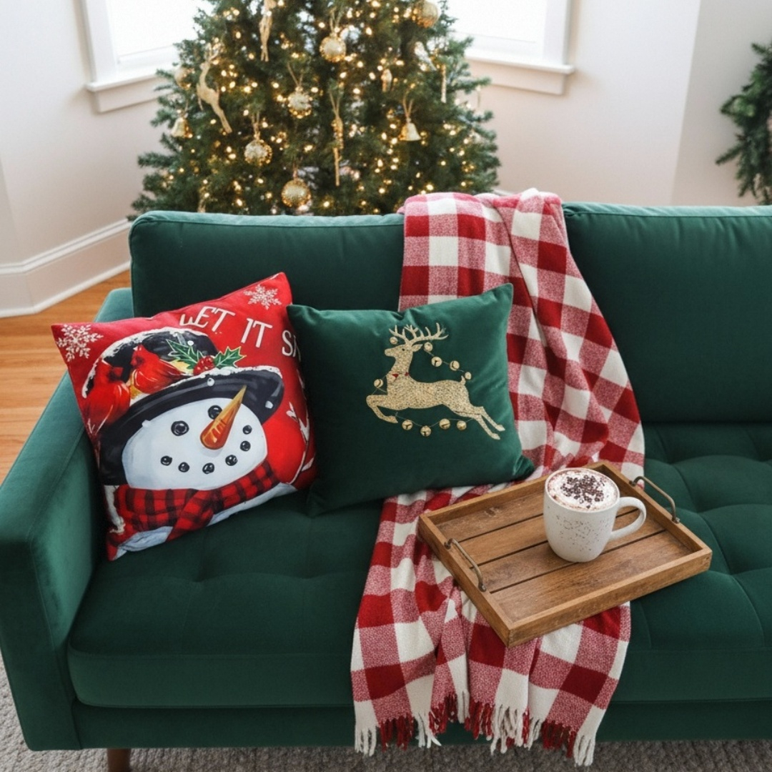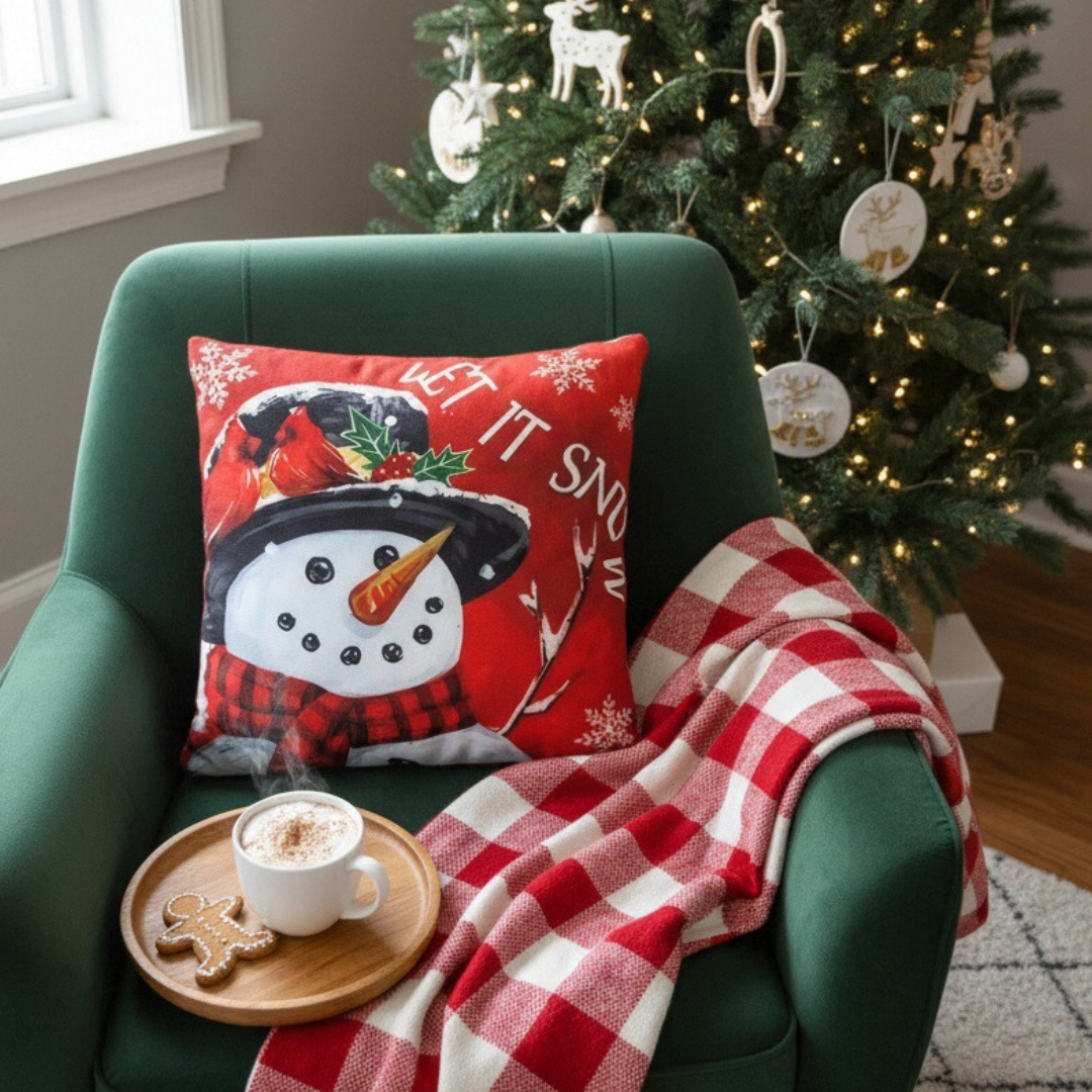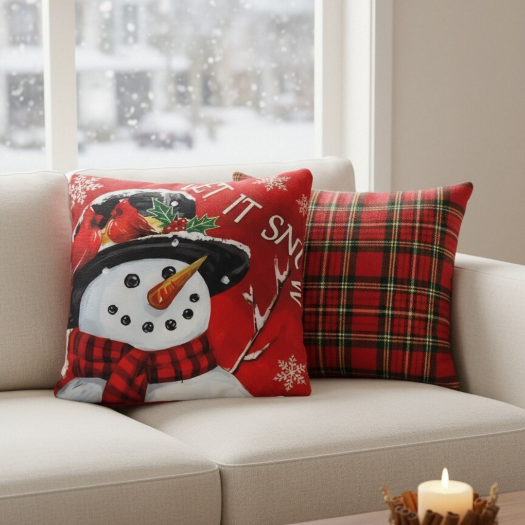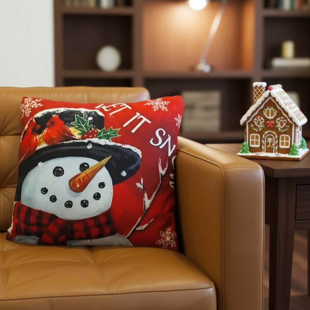 Creeaza o atmosfera de poveste cu ajutorul acestei minunate fata de perna cu model Craciun.
