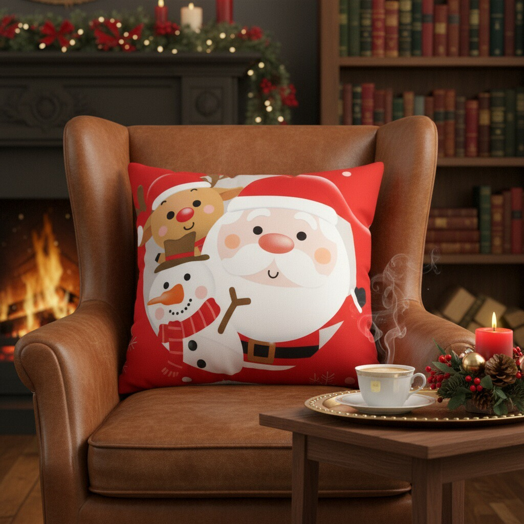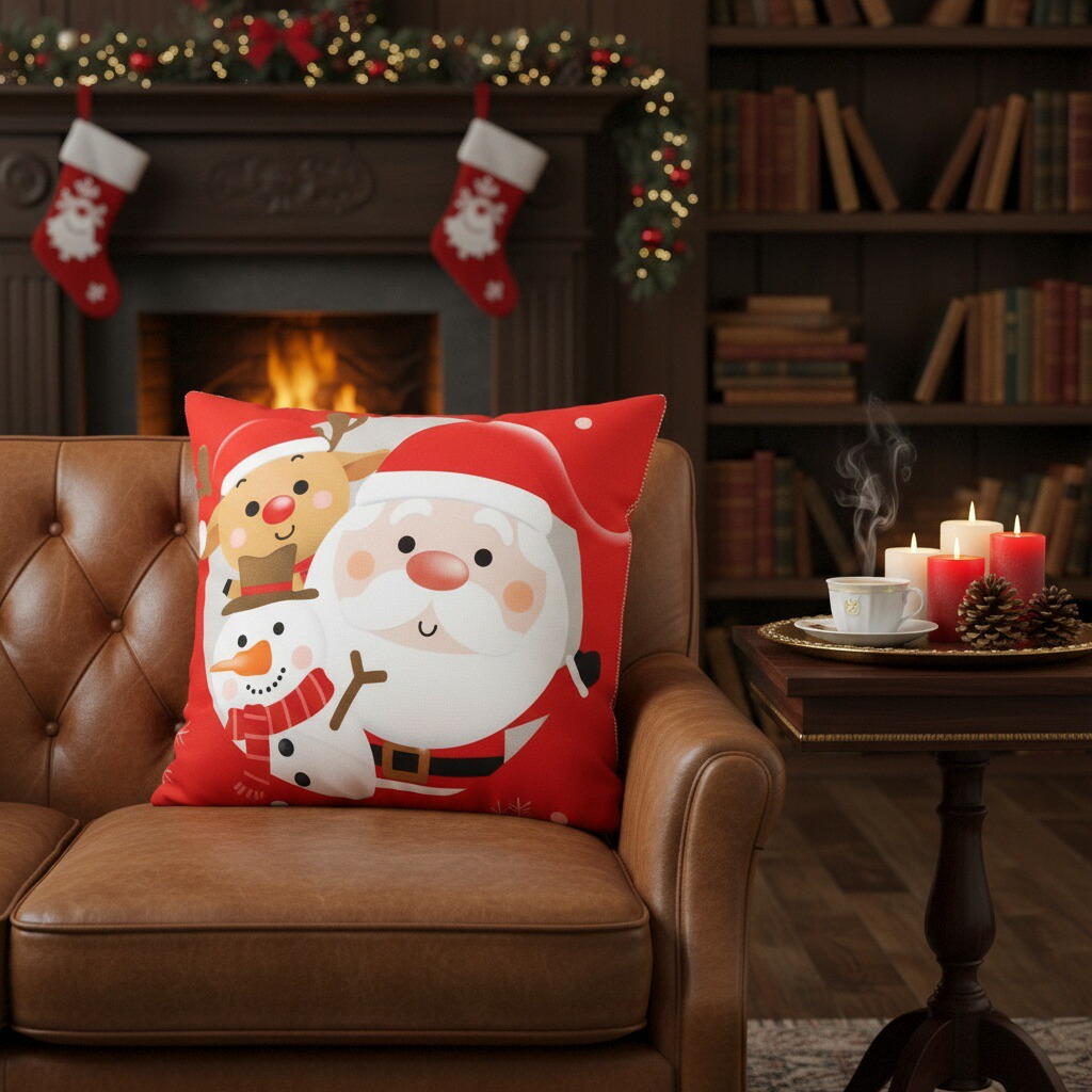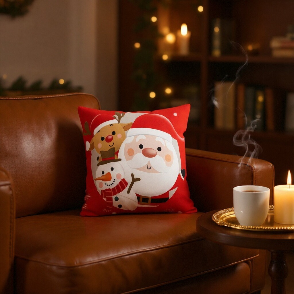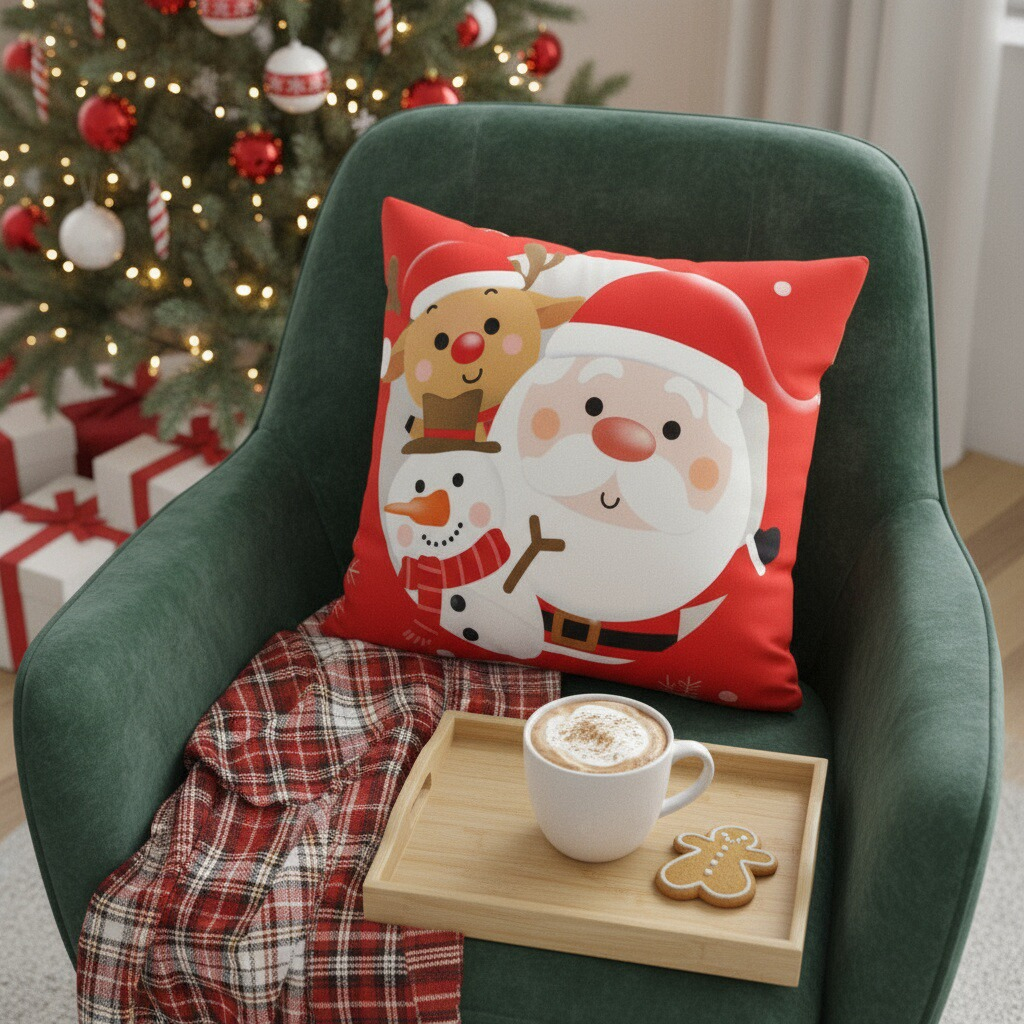 Creeaza o atmosfera de poveste cu ajutorul acestei minunate fata de perna cu model Craciun.