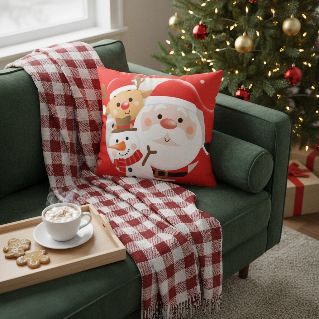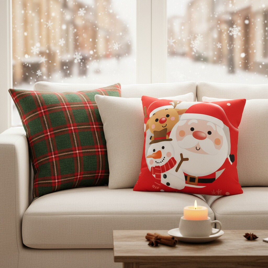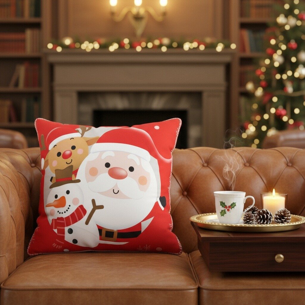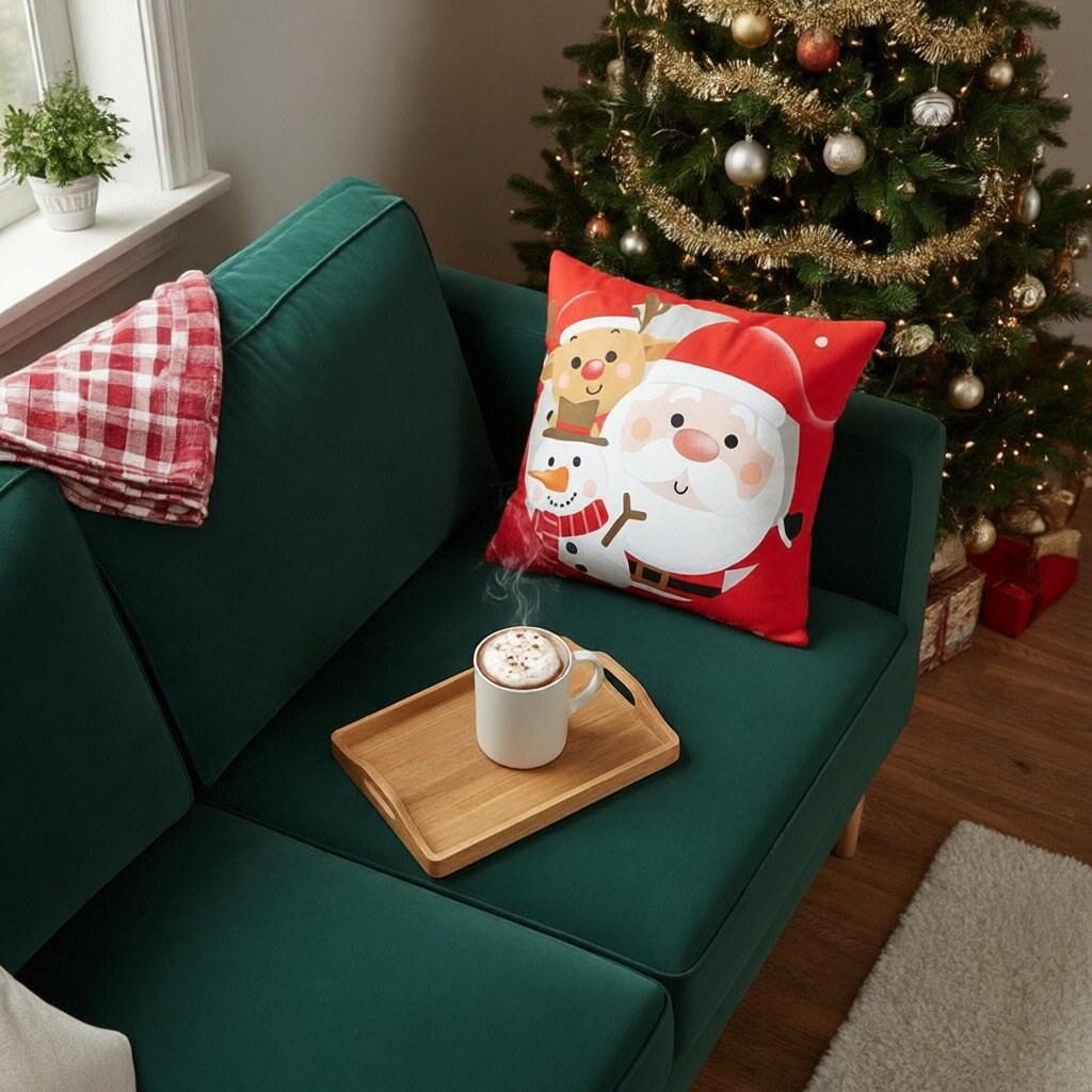 Creeaza o atmosfera de poveste cu ajutorul acestei minunate fata de perna cu model Craciun.