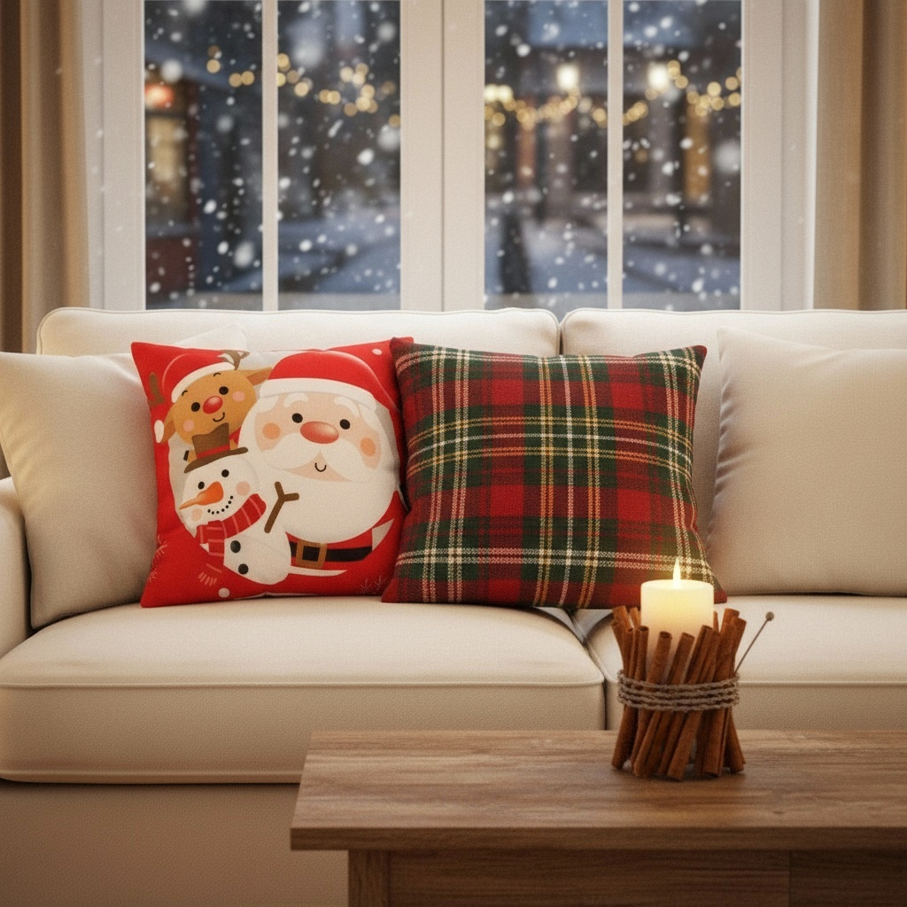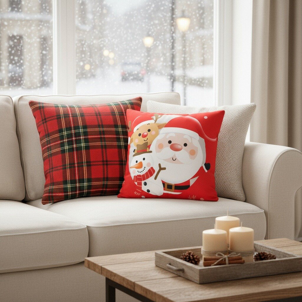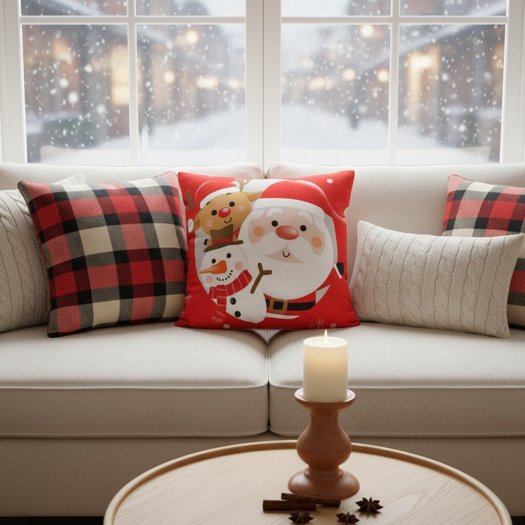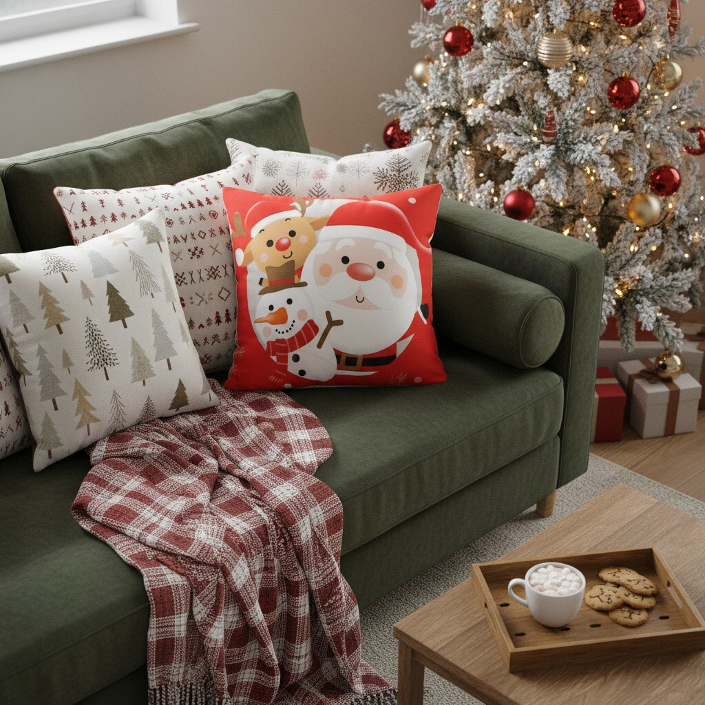 Creeaza o atmosfera de poveste cu ajutorul acestei minunate fata de perna cu model Craciun.