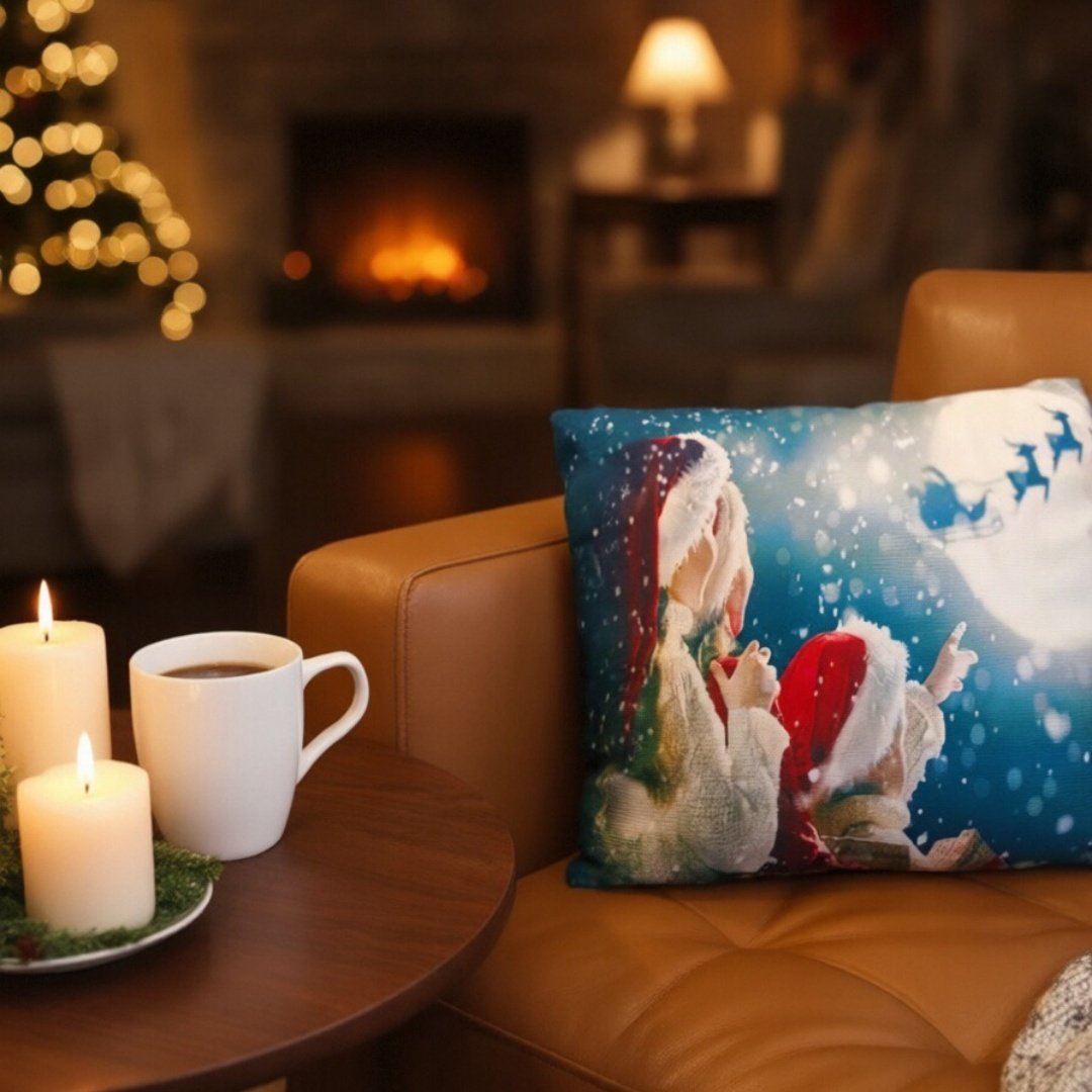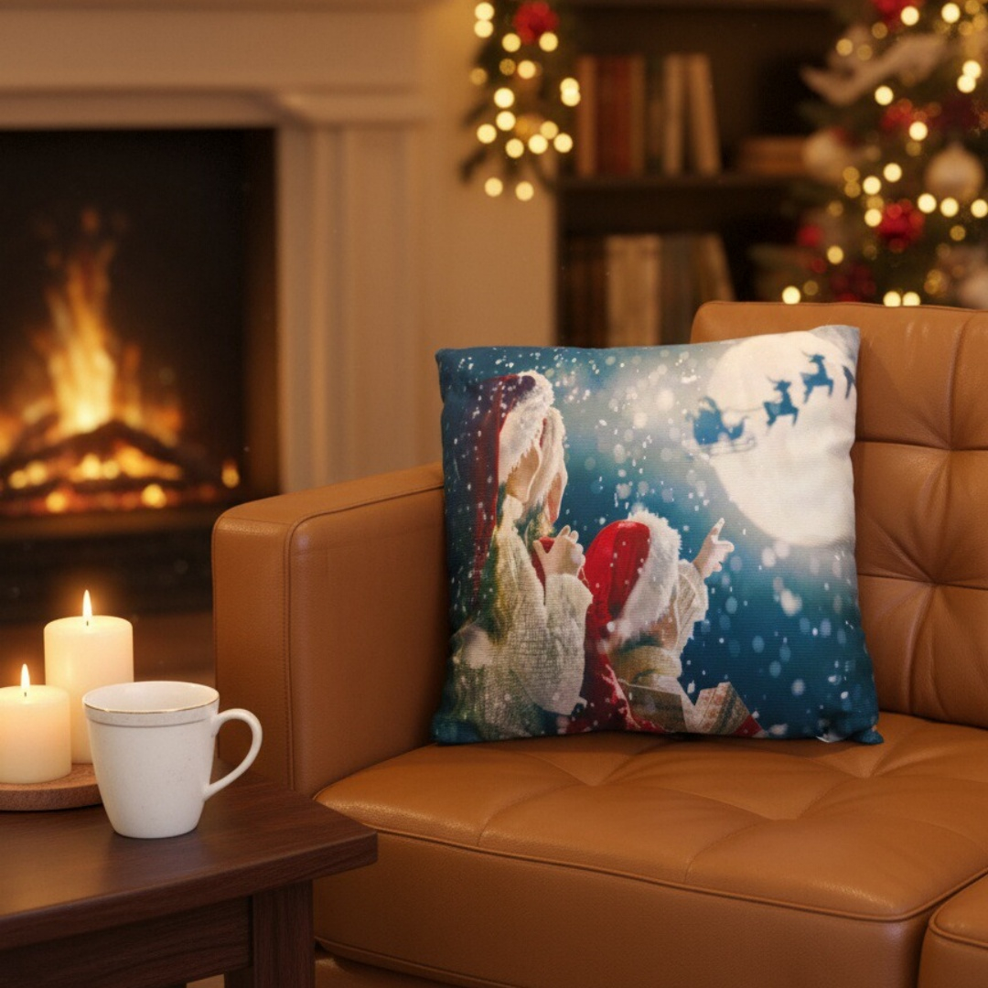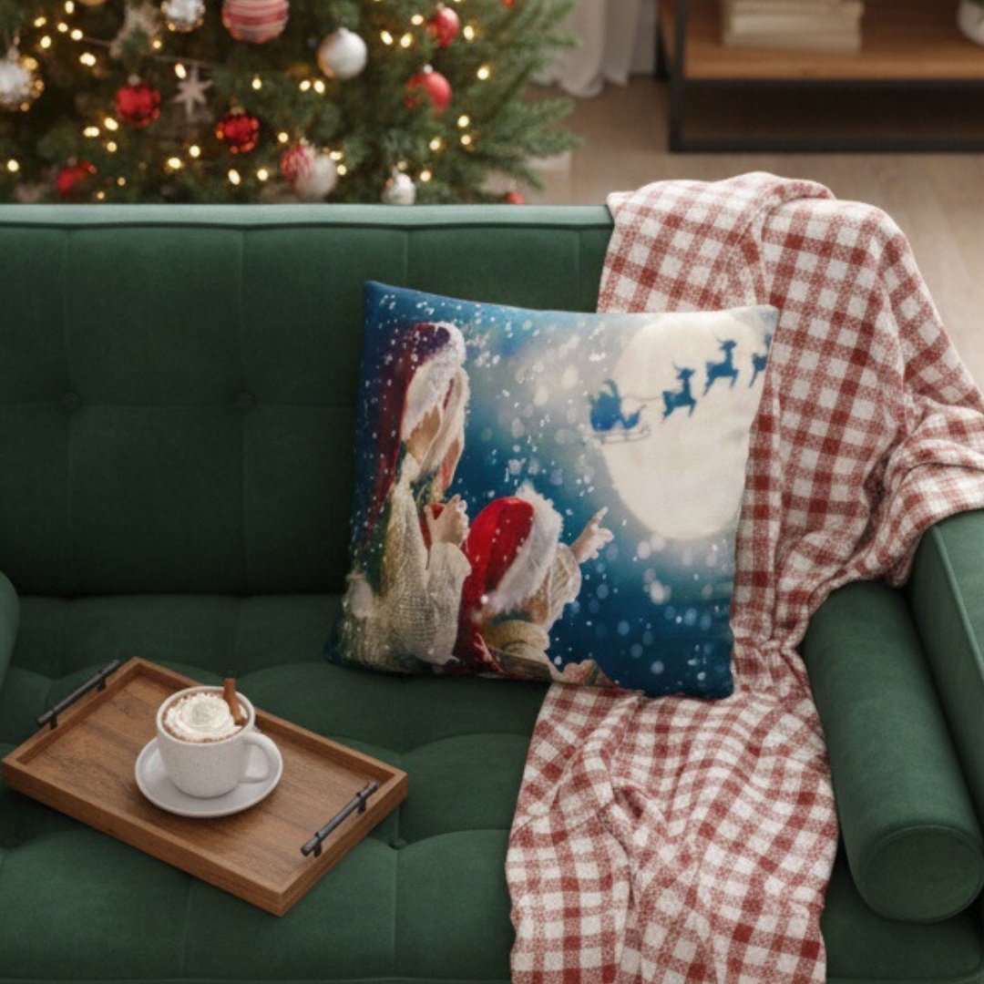 Creeaza o atmosfera de poveste cu ajutorul acestei minunate fata de perna cu model Craciun.