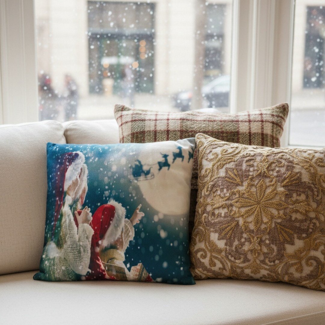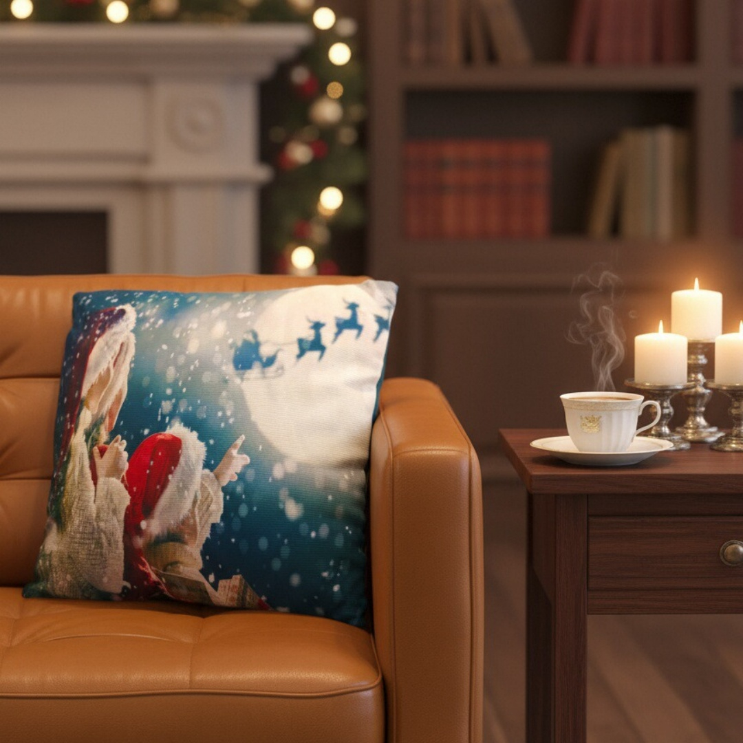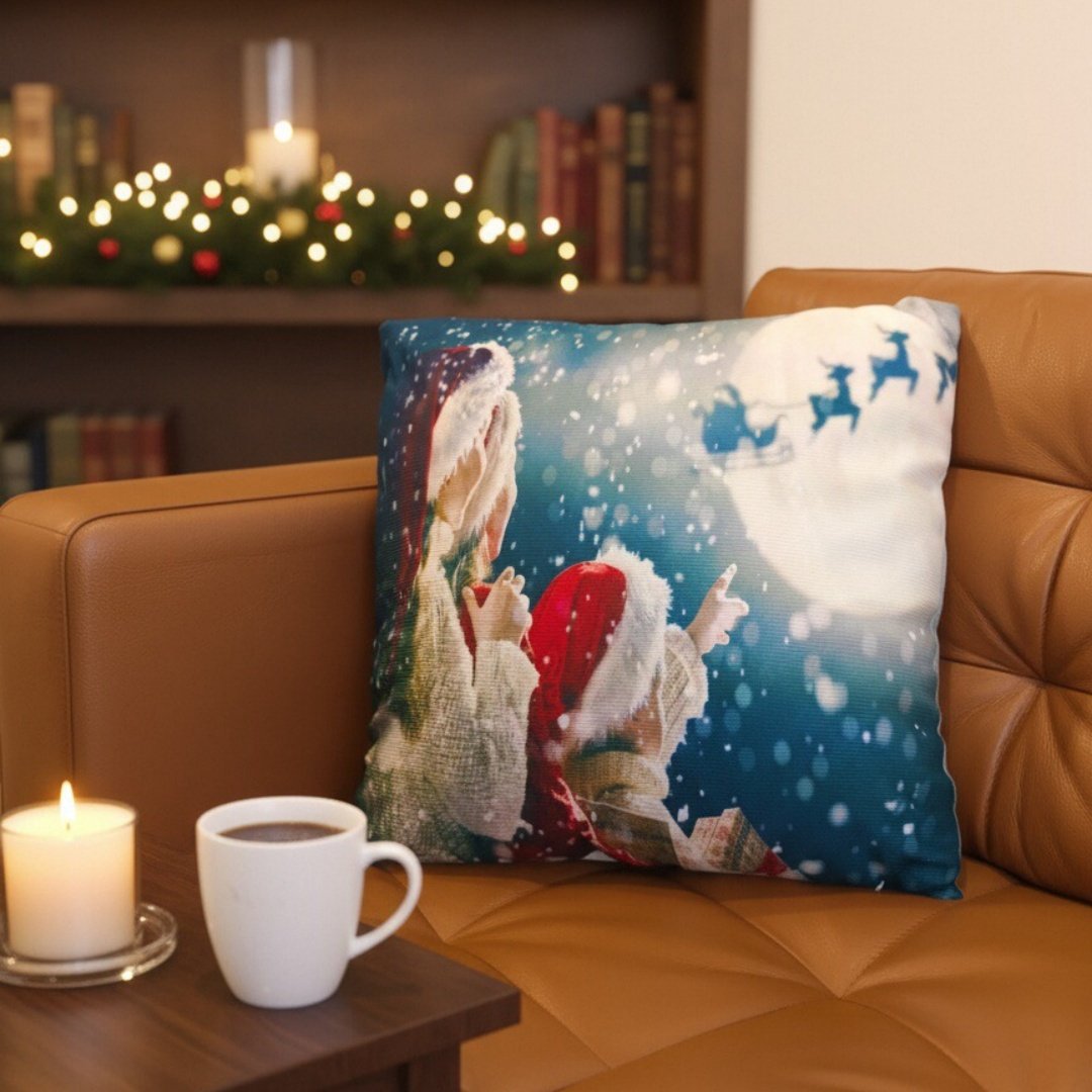 Creeaza o atmosfera de poveste cu ajutorul acestei minunate fata de perna cu model Craciun.
