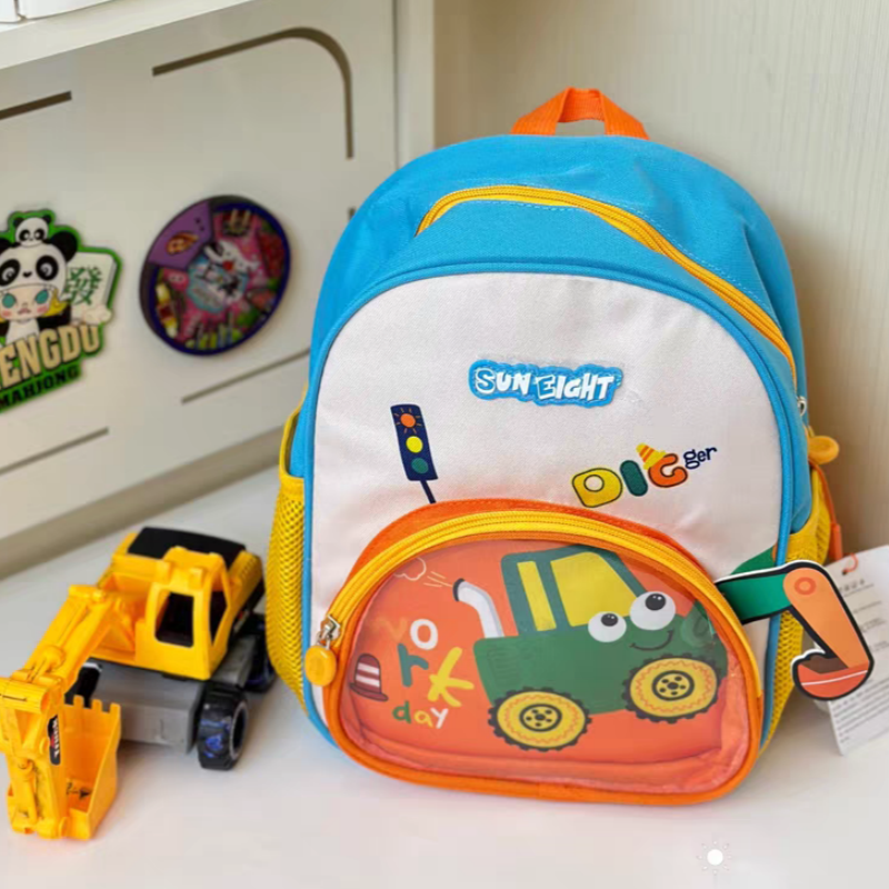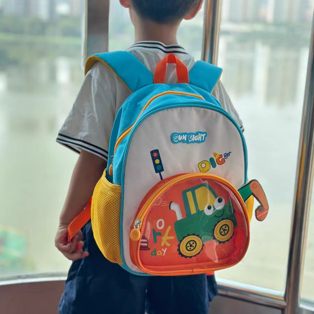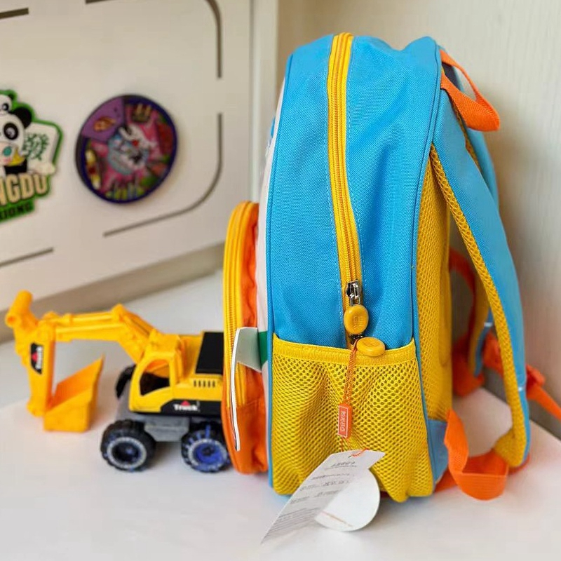 Acest ghiozdan pentru gradinita sau scoala primara cu print vesel 3D ' Constructii ' este practic, adorabil si perfect pentru aventurile celor mici. Confectionat dintr-un material durabil si calitativ, pentru un confort maxim. Compartimentul principal este prevazut cu un fermoar rezistent si ofera suficient spatiu pentru a transporta carti, caiete, rechizite, obiecte scolare, s.a. Buzunarele laterale elastice sunt ideale pentru transportul sticlelor de apa, umbrelelor sau a obiectelor mici.