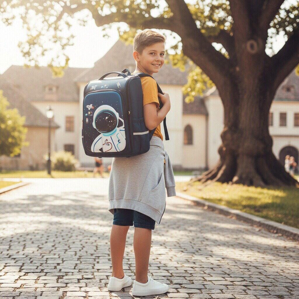 Acest ghiozdan 3D pentru scoala primara cu tematica astronaut este practic, adorabil si perfect pentru cei mici. Confectionat dintr-un material impermeabil durabil, acesta asigura protectia obiectelor scolare impotriva stropilor de ploaie. Compartimentul principal este prevazut cu un fermoar rezistent si ofera suficient spatiu pentru a transporta carti, caiete, rechizite, obiecte scolare, s.a. Buzunarele laterale elastice sunt ideale pentru transportul sticlelor de apa sau a obiectelor mici.