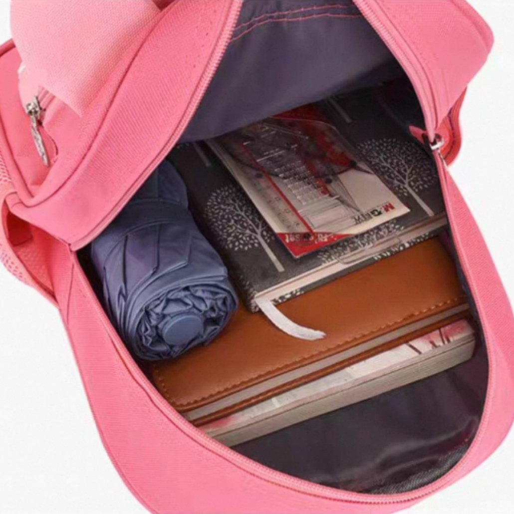 Acest ghiozdan dragut imprimat pentru scoala primara este practic, adorabil si perfect pentru cei mici. Combina utilitatea si aspectul adorabil, indiferent daca copilul tau merge la scoala, face un picnic, calatoreste, camping, drumetii sau alte activitati in aer liber. Confectionat dintr-un material durabil, rezistent, calitativ si usor de curatat. Compartimentul principal este prevazut cu un fermoar rezistent si ofera suficient spatiu pentru a transporta carti, caiete, rechizite, obiecte scolare, s.a. In partea din fata gasim inca un compartiment aditional prevazut cu fermoar. Buzunarele laterale elastice sunt ideale pentru transportul sticlelor de apa sau a obiectelor mici.
