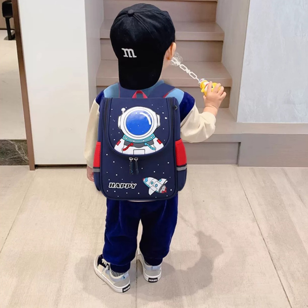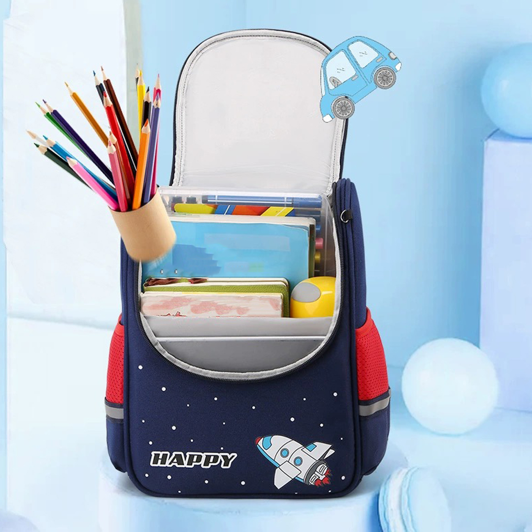 Acest ghiozdan pentru scoala primara cu tematica spatiu este practic, adorabil si perfect pentru cei mici. Confectionat dintr-un material impermeabil durabil, acesta asigura protectia obiectelor scolare impotriva stropilor de ploaie. Compartimentul principal este prevazut cu un fermoar rezistent si ofera suficient spatiu pentru a transporta carti, caiete, rechizite, obiecte scolare, s.a. Buzunarele laterale elastice sunt ideale pentru transportul sticlelor de apa sau a obiectelor mici.