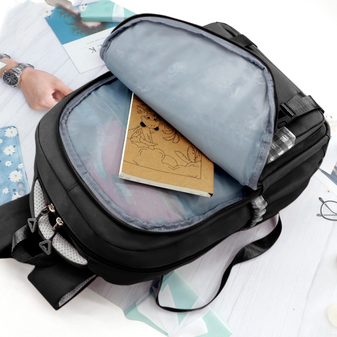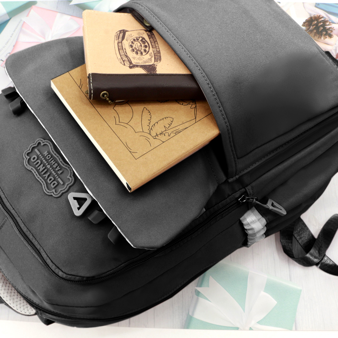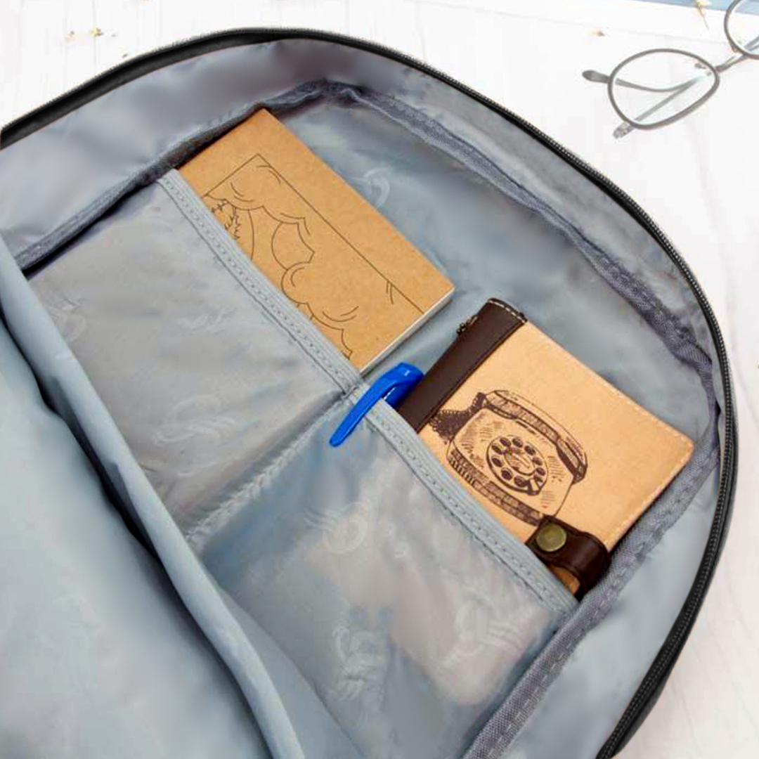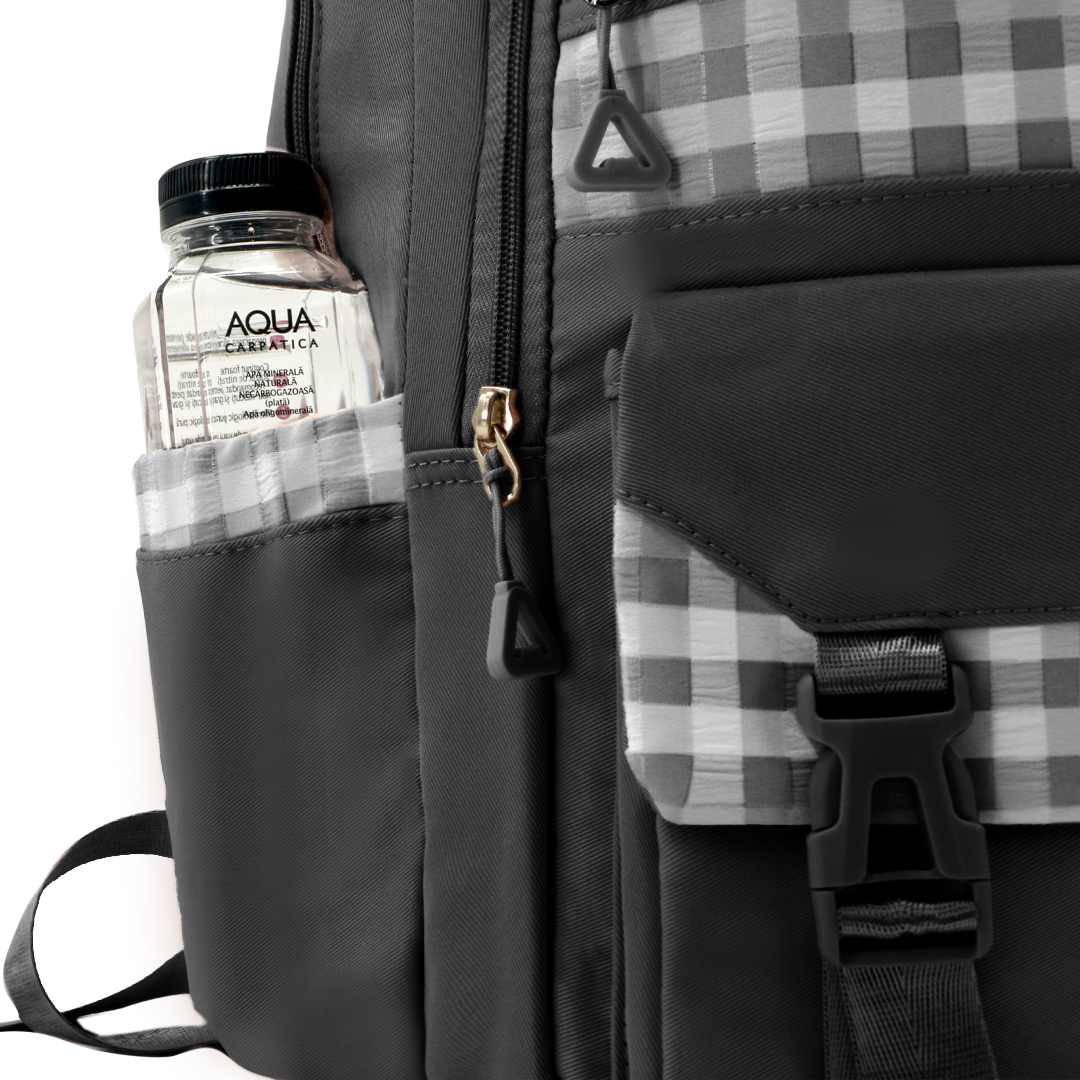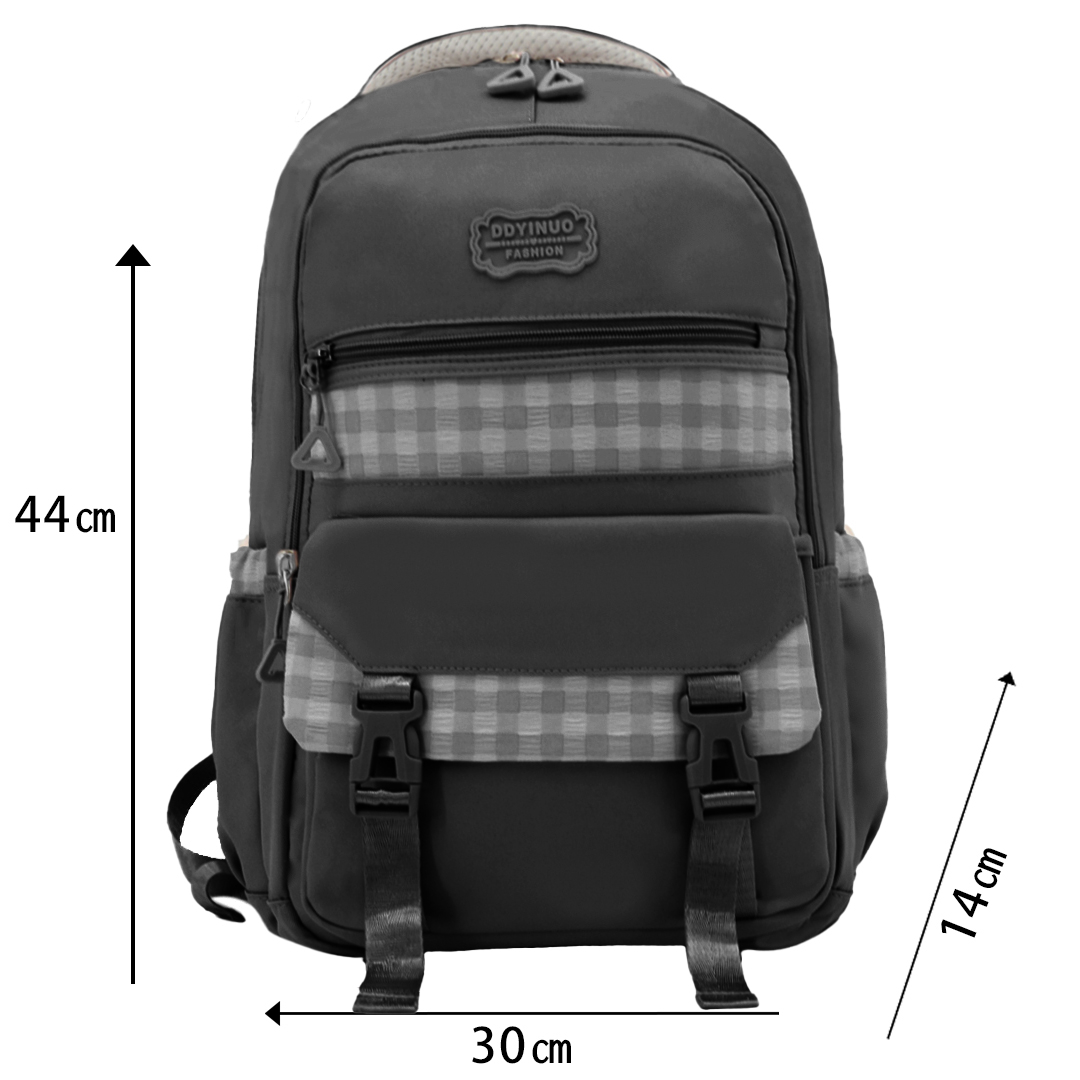 Acest rucsac spatios este perfect pentru a fi luat la scoala, serviciu, sau in calatorii, este practic si are un aspect foarte placut din punct de vedere estetic. Confectionat dintr-un material impermeabil, durabil si calitativ. Are un compartiment principal cu buzunare suplimentare in interior, prevazut cu fermoar rezistent si ofera suficient spatiu pentru a transporta carti, caiete, rechizite, obiecte scolare, ipad, laptop, s.a. In partea din fata gasim doua compartimente aditionale prevazute cu fermoar si inca un compartiment aditional cu sistem inchidere prin catarama. In partea din spate gasim un compartiment aditional spatios prevazut cu fermoar. Buzunarele laterale sunt ideale pentru transportul sticlelor de apa, umbrelelor, sau a obiectelor mici.