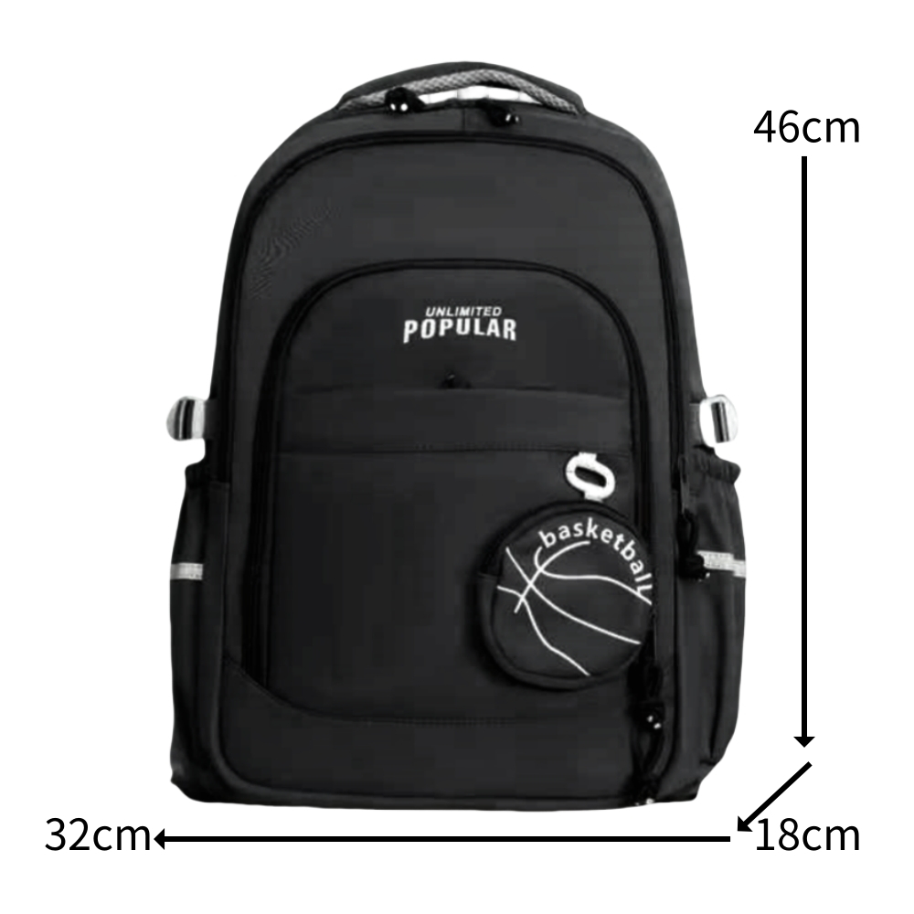 Acest rucsac spatios este perfect pentru a fi luat la scoala, serviciu, sau in calatorii, este practic si are un aspect foarte placut din punct de vedere estetic. Confectionat dintr-un material durabil si calitativ. Are un compartiment principal prevazut cu fermoar rezistent si ofera suficient spatiu pentru a transporta carti, caiete, rechizite, obiecte scolare, ipad, laptop, s.a. In partea din fata gasim trei compartimente aditionale prevazute cu fermoar si un accesoriu pusculita. In partea din spate gasim accesoriul care permite atasarea acestuia la un troler si inca un compartiment aditional prevazut cu fermoar. Buzunarele laterale sunt ideale pentru transportul sticlelor de apa, umbrelelor, sau a obiectelor mici.