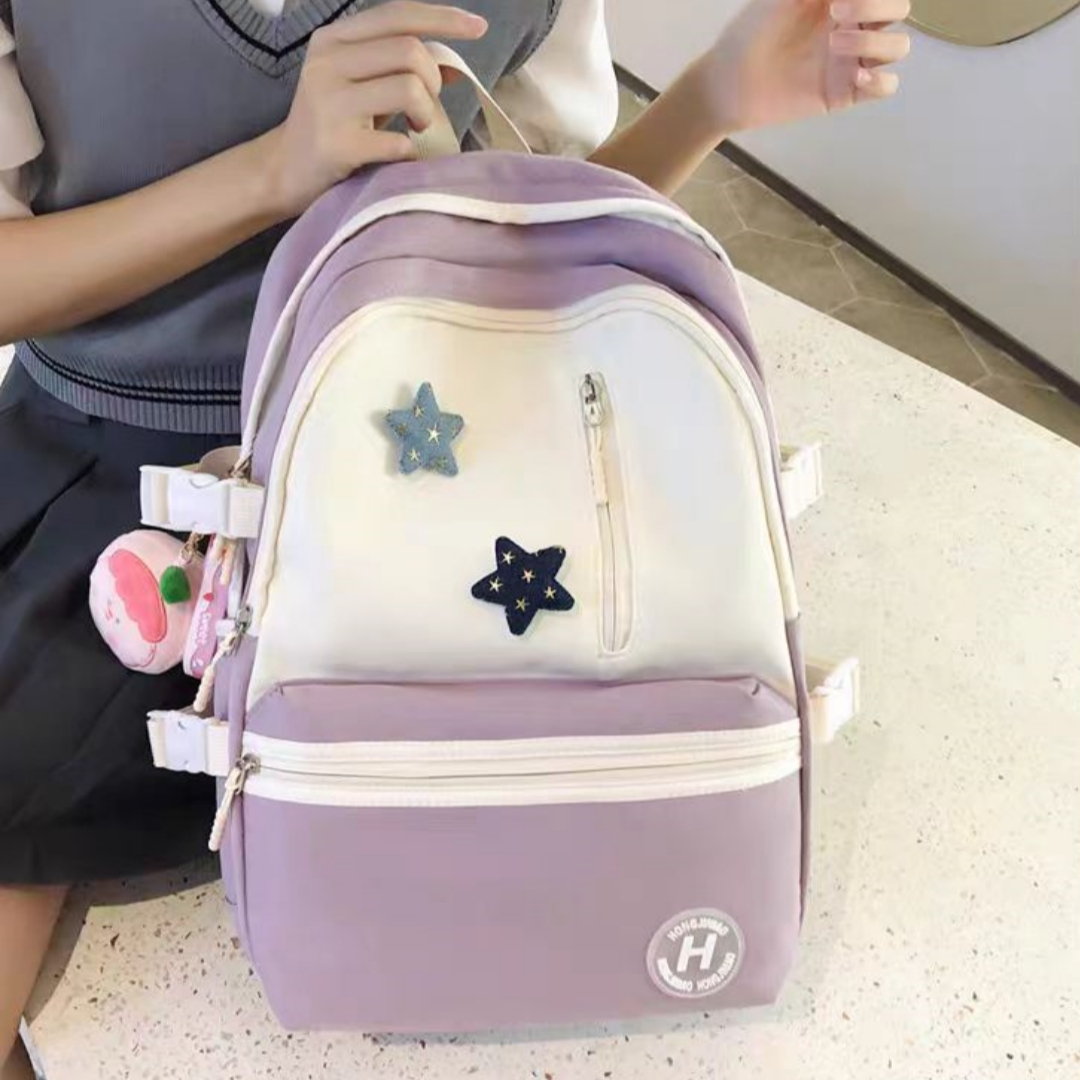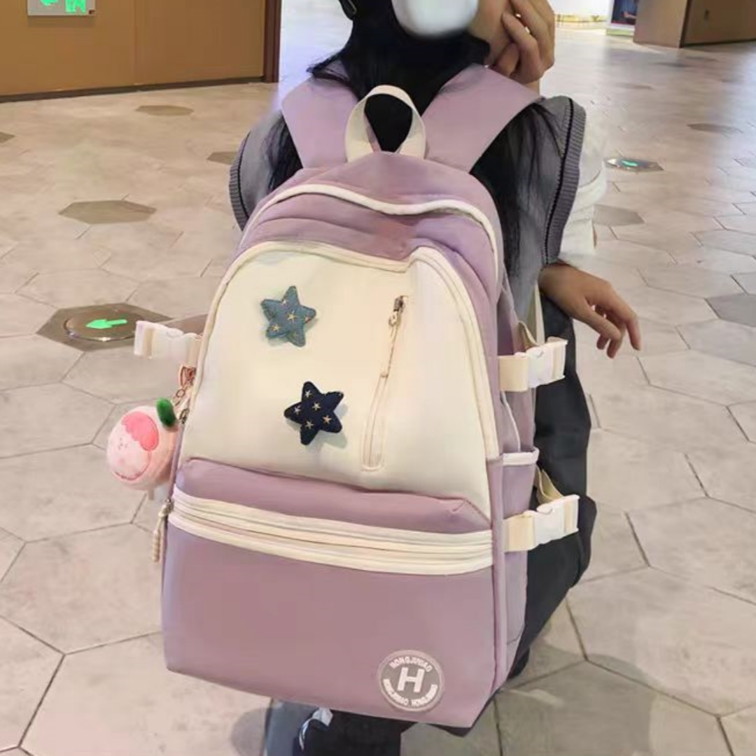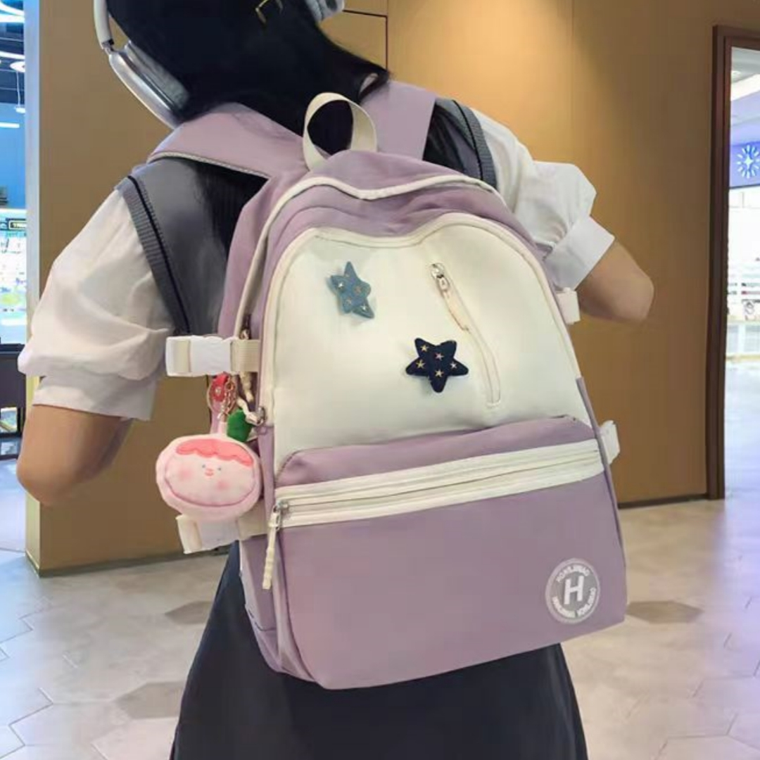 Acest rucsac spatios este perfect pentru a fi luat la scoala, serviciu, sau in calatorii, este practic si are un aspect foarte placut din punct de vedere estetic. Confectionat dintr-un material durabil si calitativ. Are un compartiment principal prevazut cu fermoar rezistent si ofera suficient spatiu pentru a transporta carti, caiete, rechizite, obiecte scolare, ipad, laptop, s.a. In partea din fata gasim mai multe compartimente aditionale prevazute cu fermoar, pentru depozitarea obiectelor de dimensiuni mici sau medii. Buzunarele laterale sunt ideale pentru transportul sticlelor de apa, umbrelelor, sau a obiectelor mici.