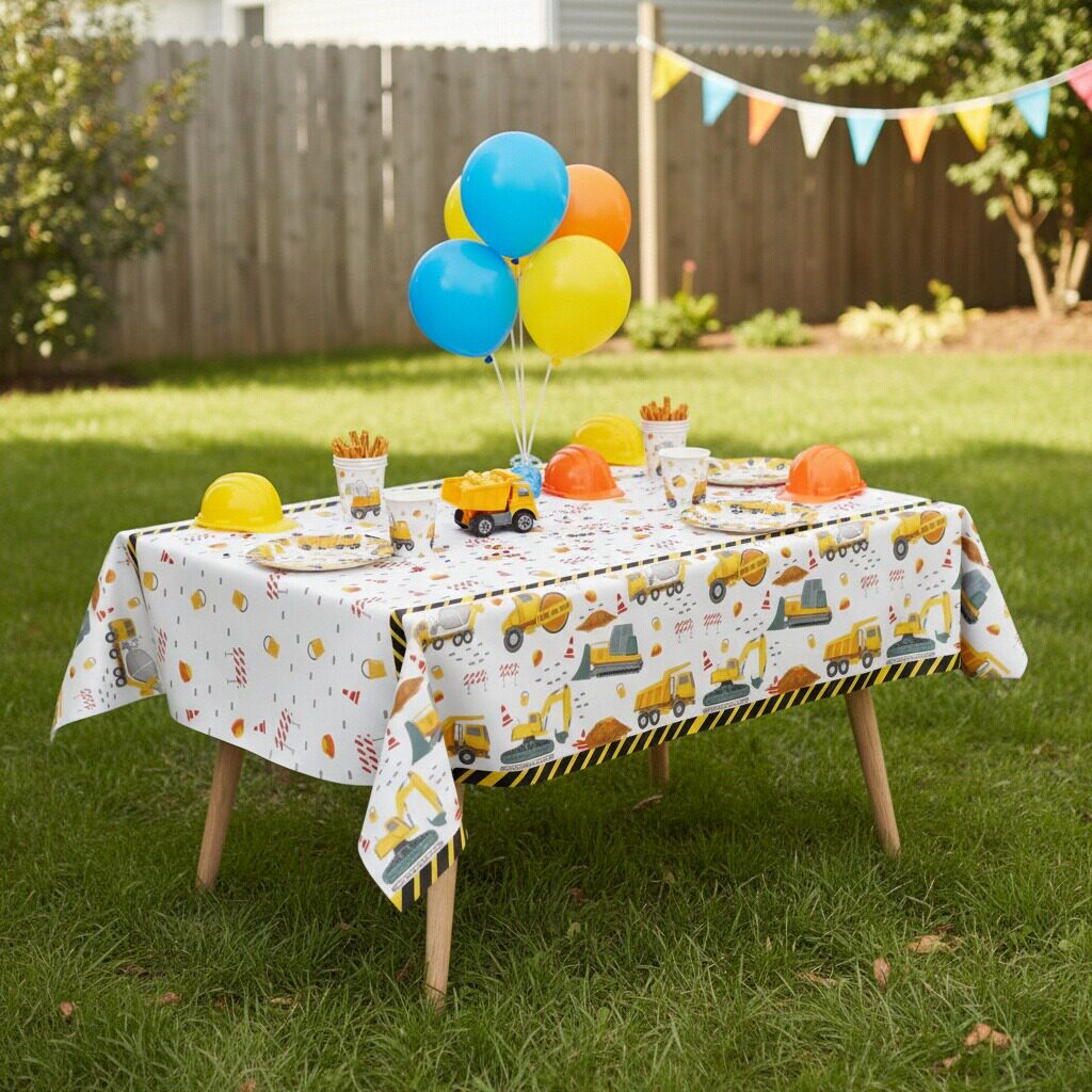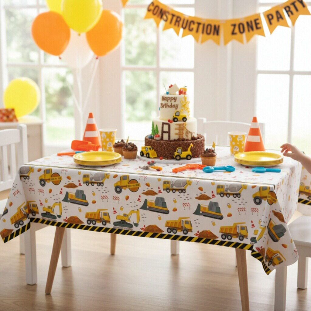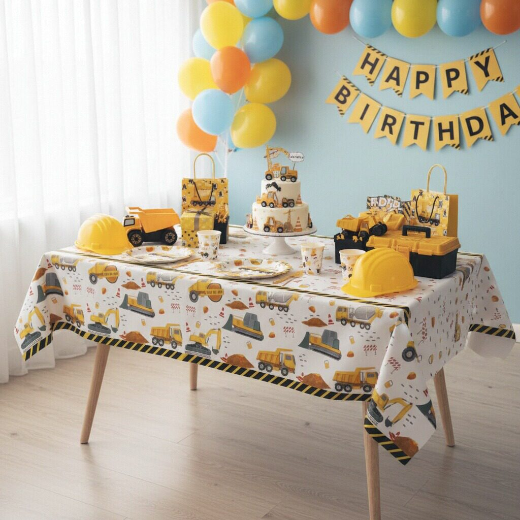 Fata de masa tematica pentru petrecere, model Constructii 183 x 137 cm 2260-2604