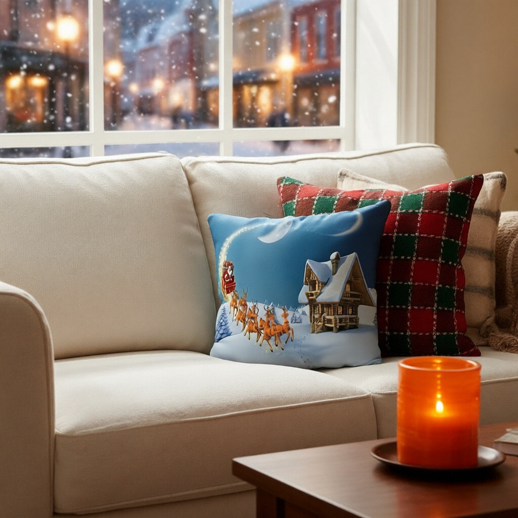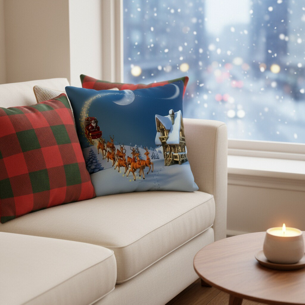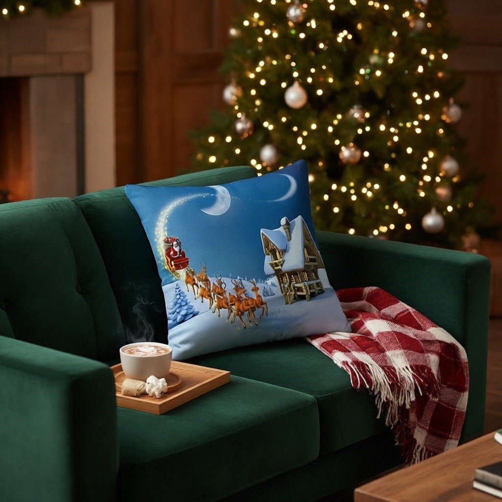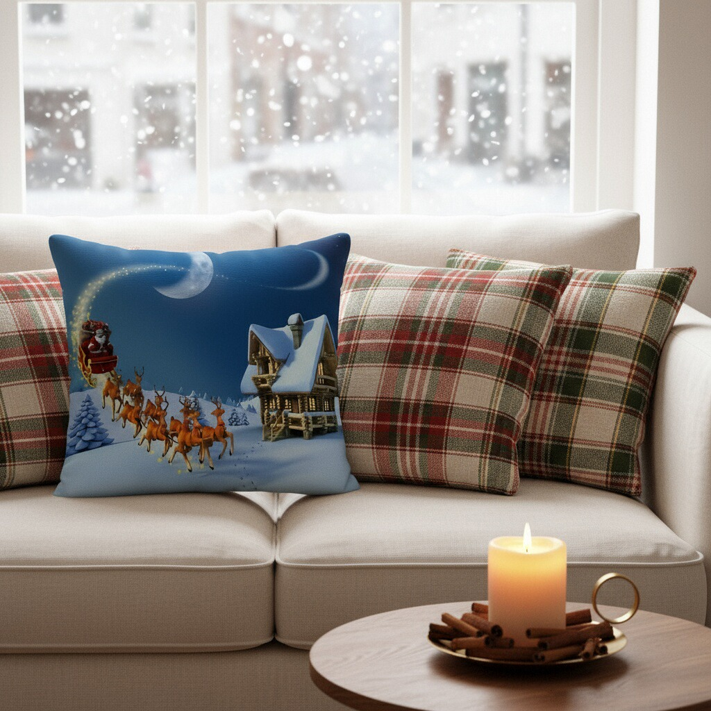 Creeaza o atmosfera de poveste cu ajutorul acestei minunate fata de perna cu model Craciun.