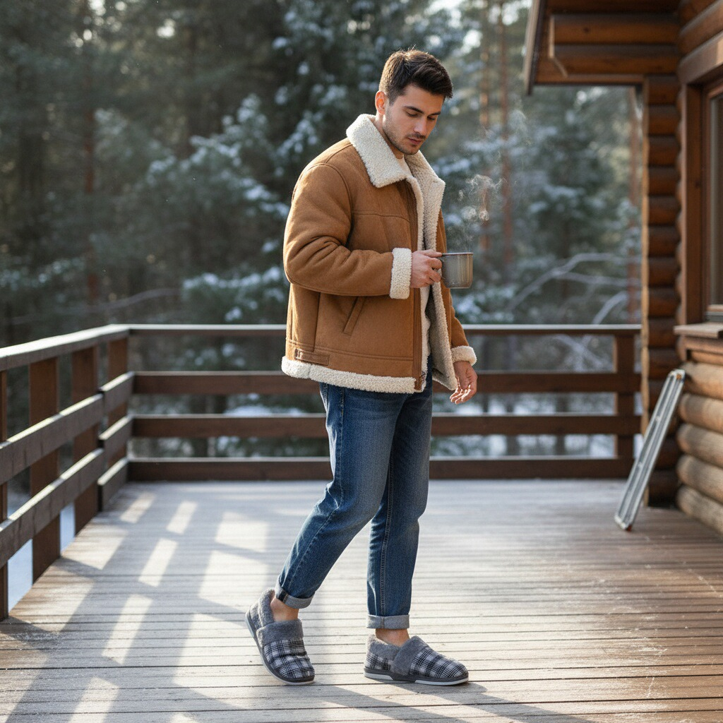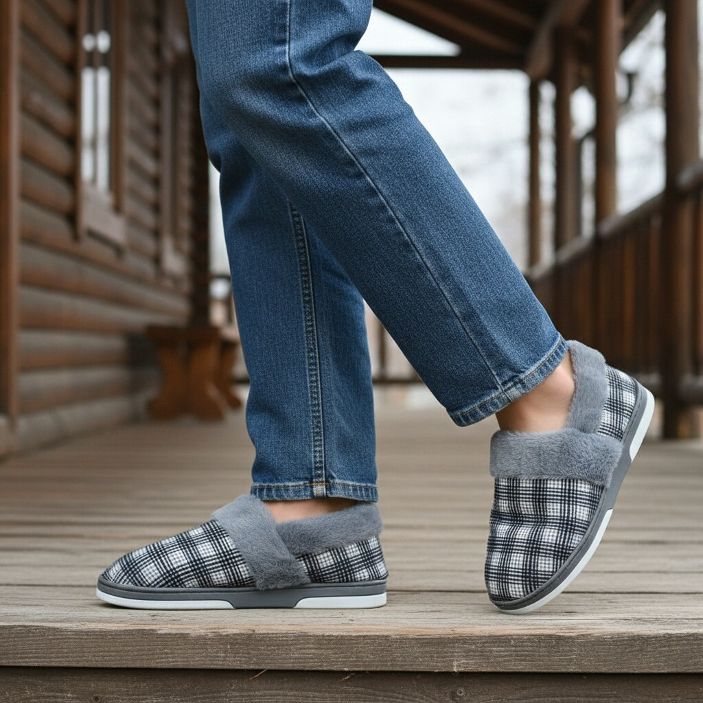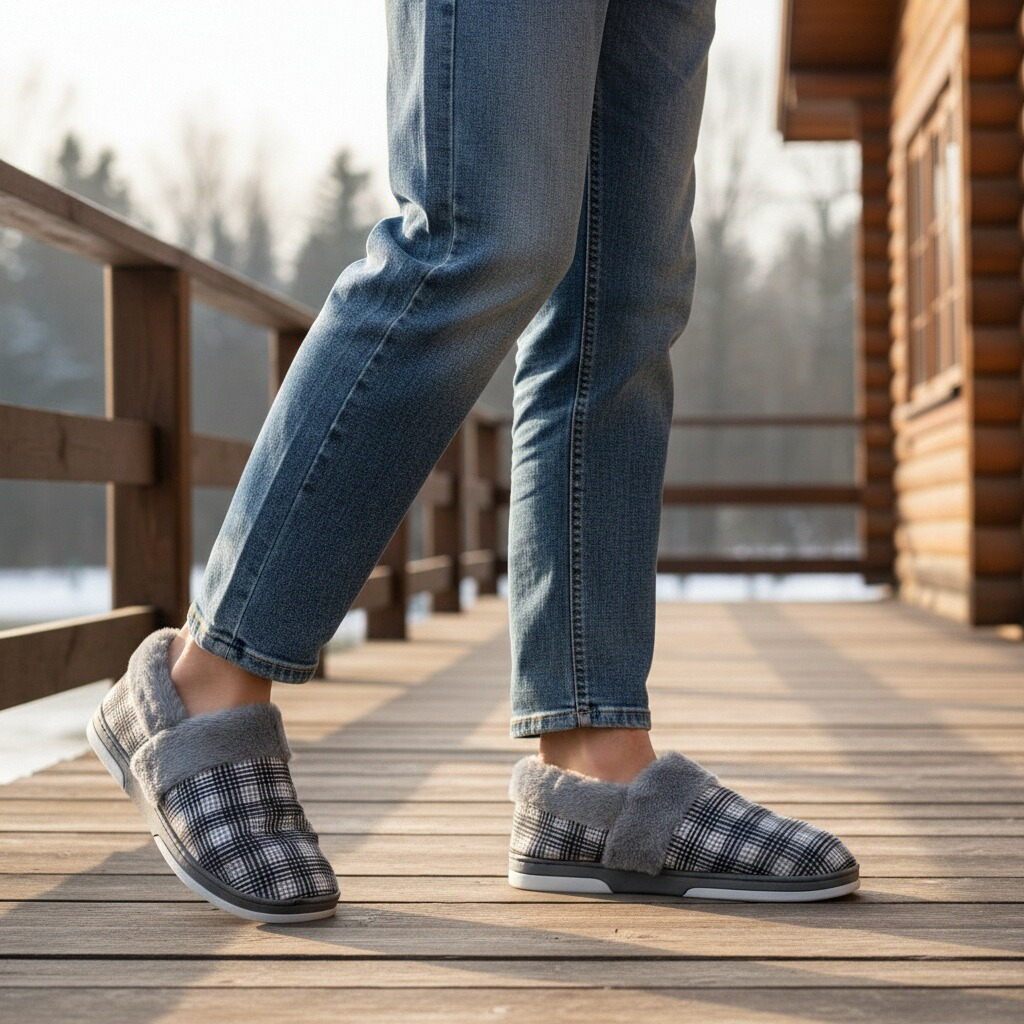 Papuci de casa pufosi si relaxanti, lucrati din materiale moi si calduroase. Sunt alegerea perfecta pentru confort si incalzire.