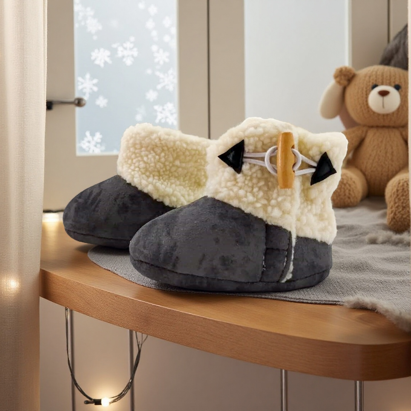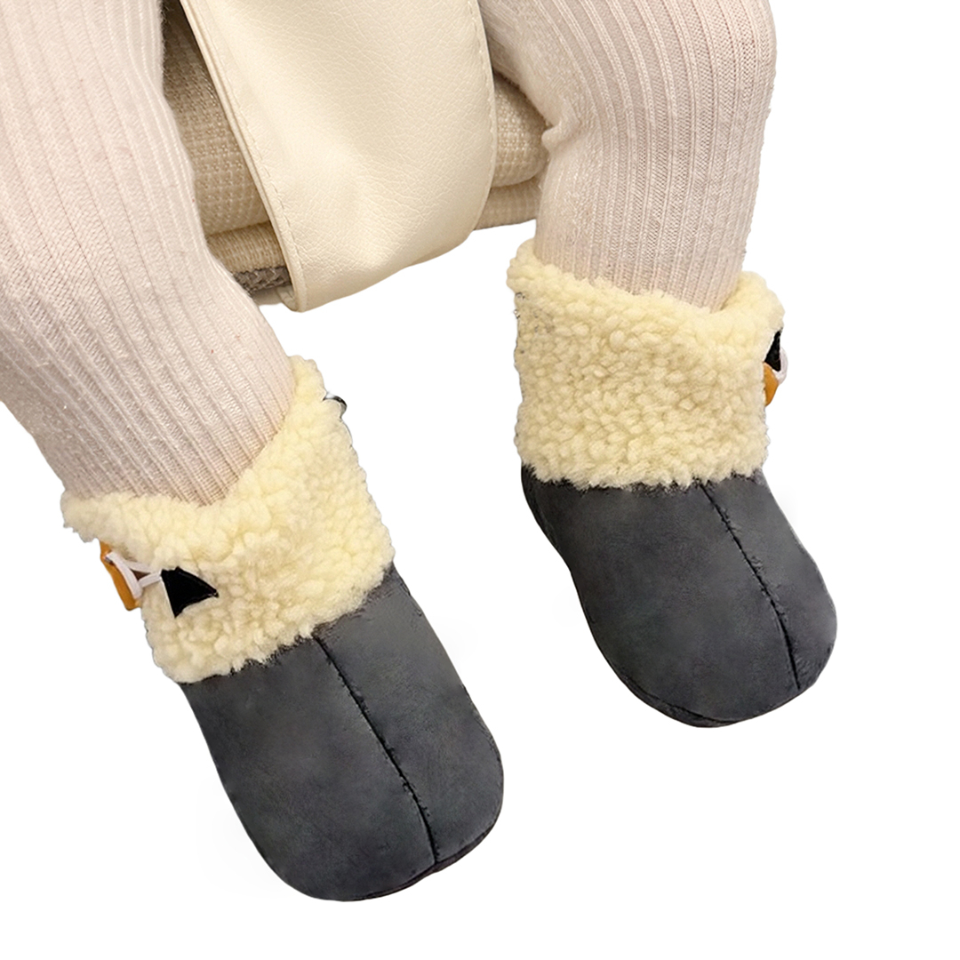 Botoșei bebe realizați din catifea fină și blăniță artificială, fini și plăcuți la atingere. Sunt o alegere încântătoare pentru a încălzi și proteja piciorușele delicate ale celor mici. Perfecți pentru vremuri racoroase.