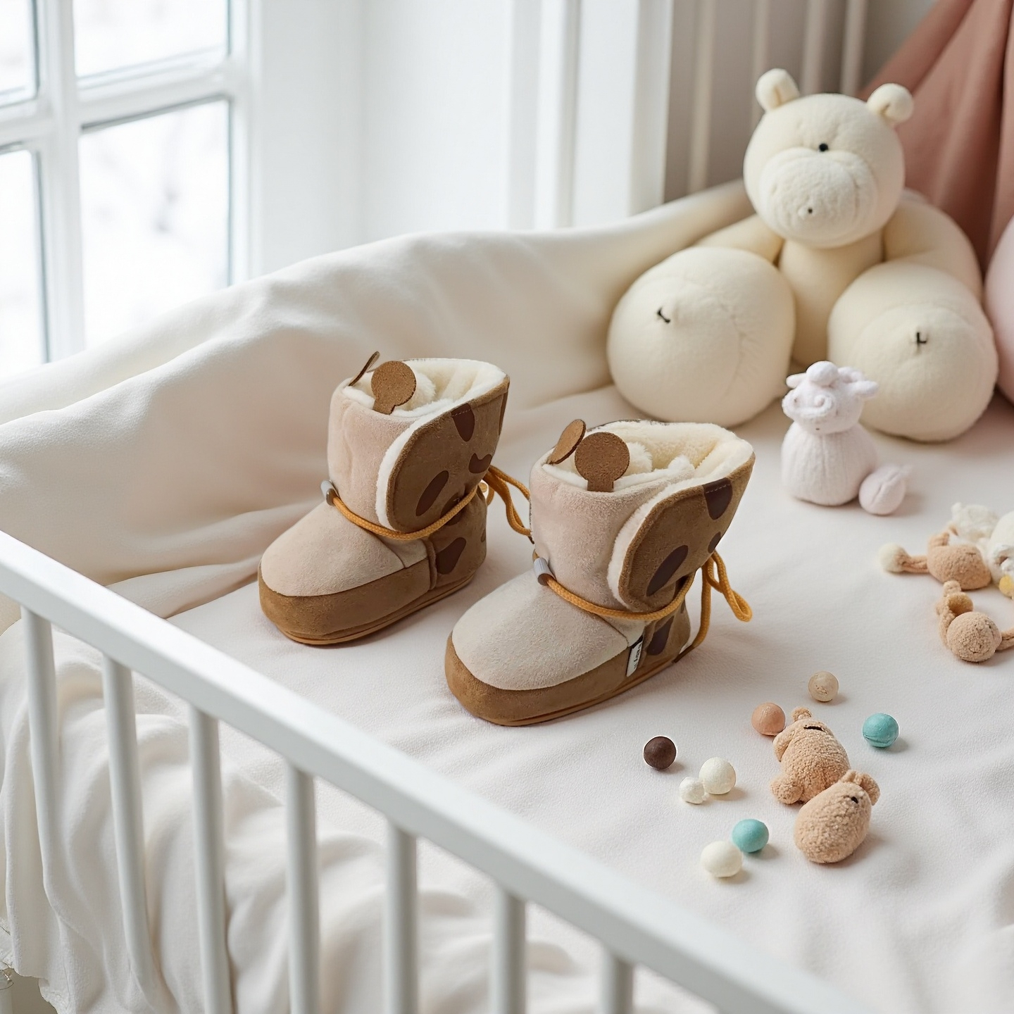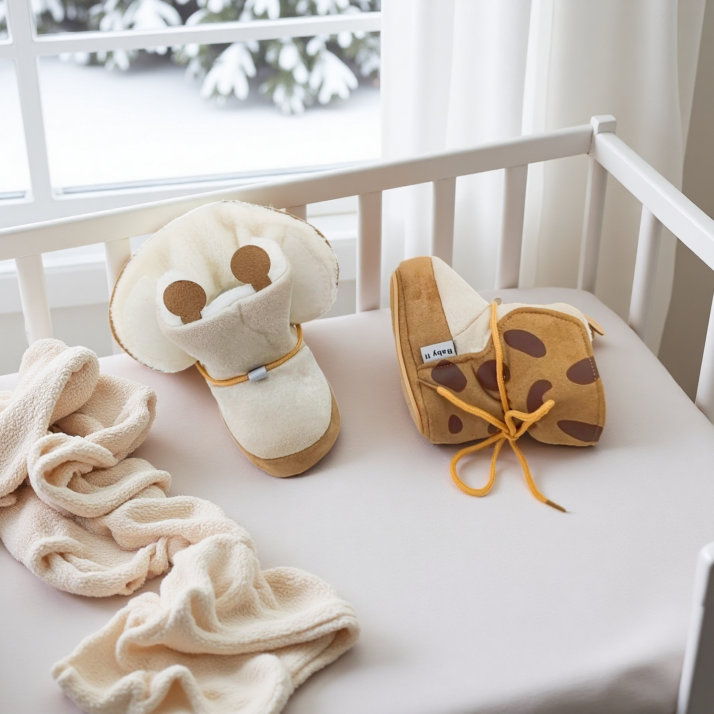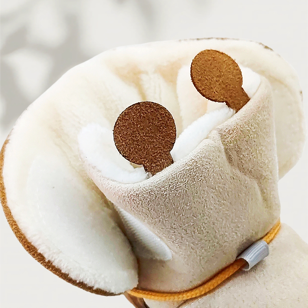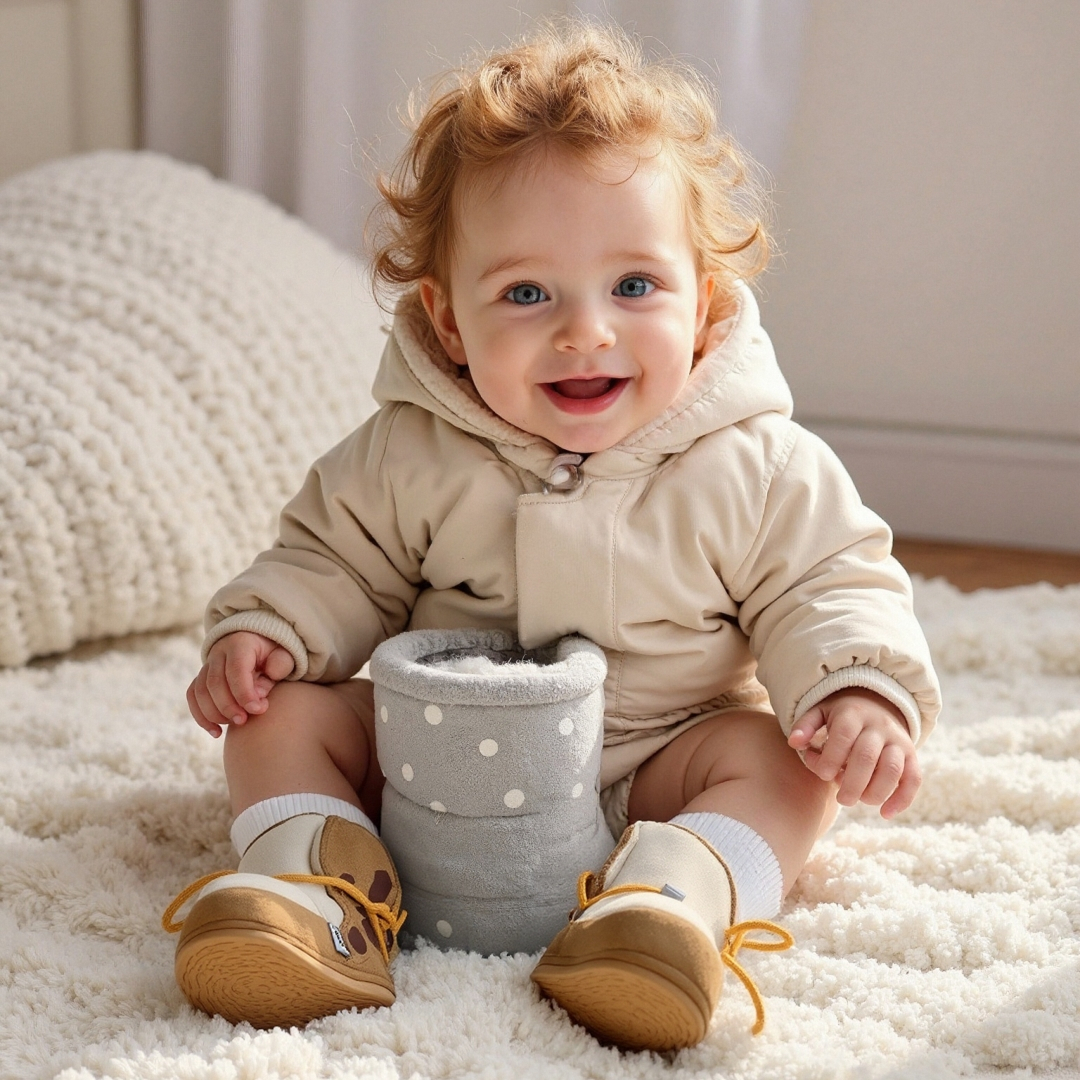 Botoșei bebe realizați din catifea fină și blăniță artificială, fini și plăcuți la atingere. Sunt o alegere încântătoare pentru a încălzi și proteja piciorușele delicate ale celor mici. Perfecți pentru vremuri racoroase. Talpa oferă aderență suplimentară, asigurând că bebelușul se poate deplasa în siguranță chiar și pe suprafețele alunecoase. Această caracteristică joacă un rol crucial în perioada când bebelușul începe să-și dezvolte abilitățile motorii și să descopere lumea înconjurătoare.