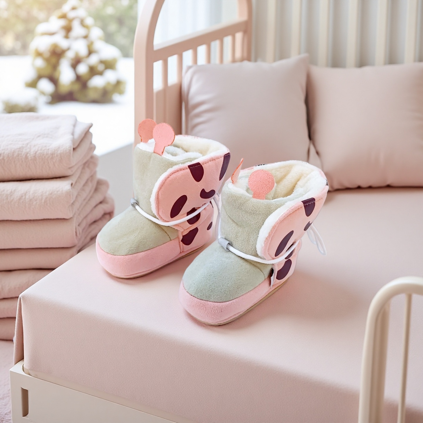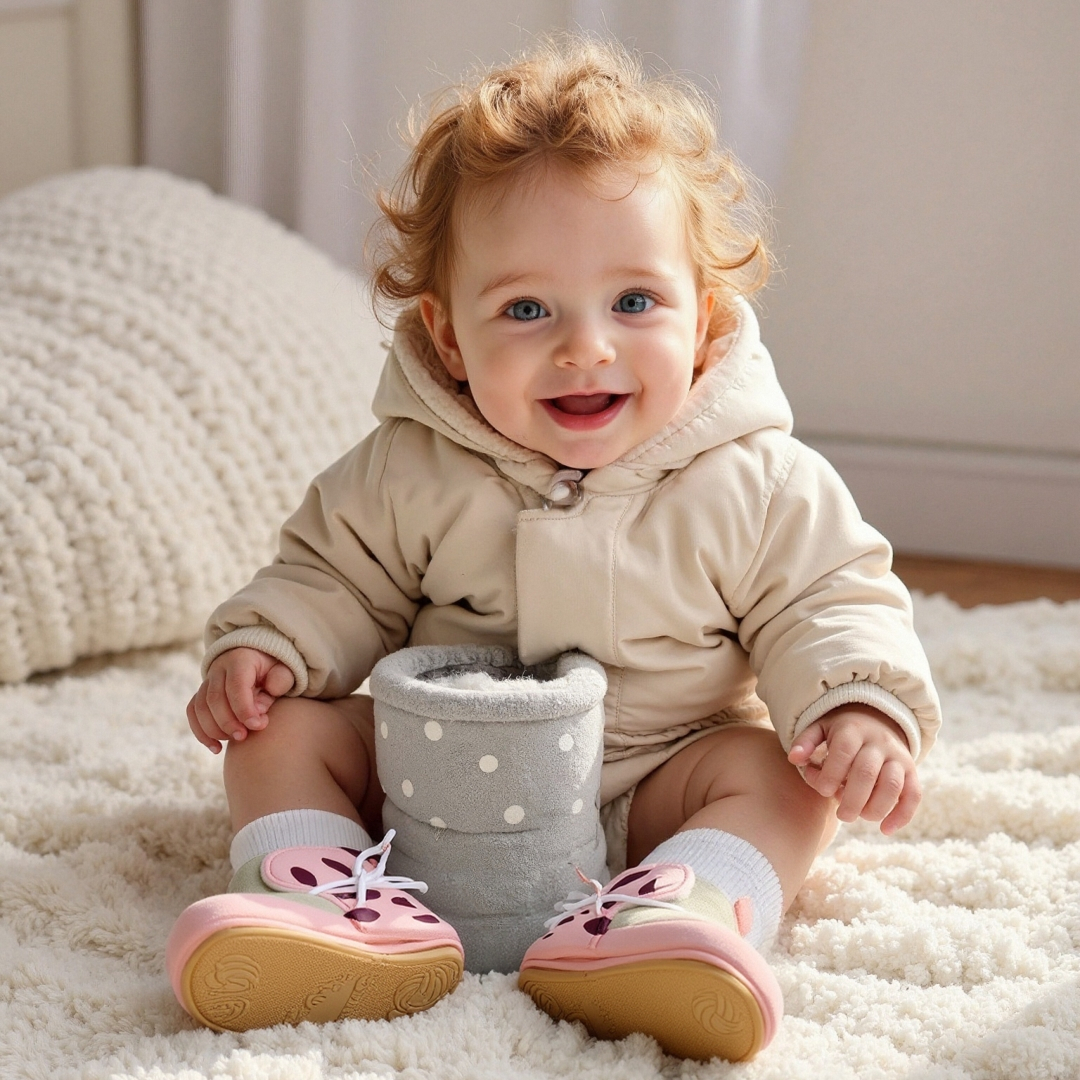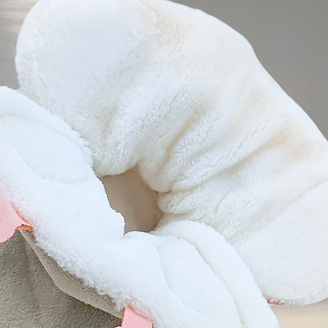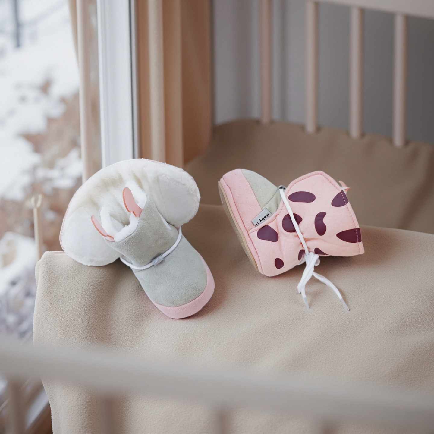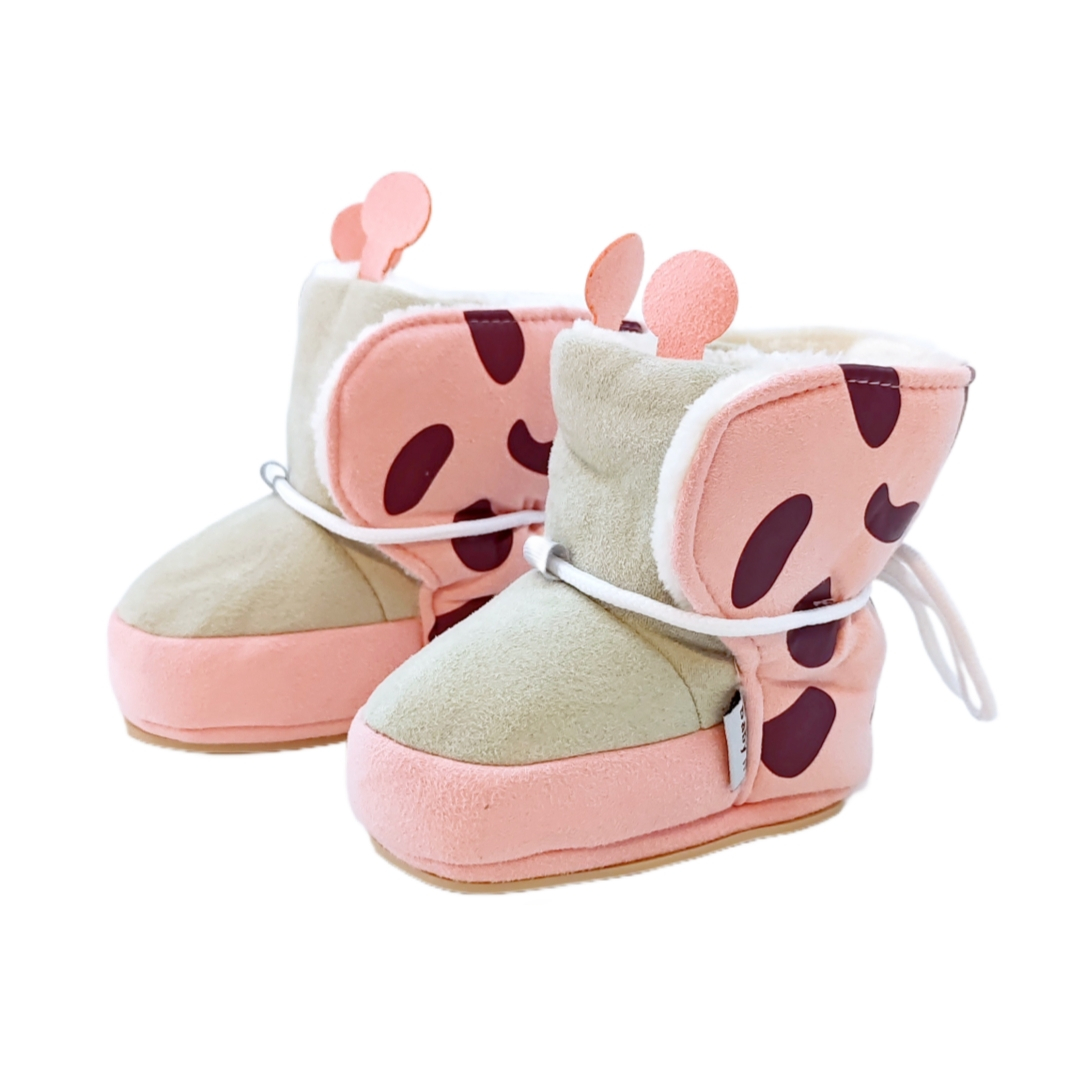 Botoșei bebe realizați din catifea fină și blăniță artificială, fini și plăcuți la atingere. Sunt o alegere încântătoare pentru a încălzi și proteja piciorușele delicate ale celor mici. Perfecți pentru vremuri racoroase. Talpa oferă aderență suplimentară, asigurând că bebelușul se poate deplasa în siguranță chiar și pe suprafețele alunecoase. Această caracteristică joacă un rol crucial în perioada când bebelușul începe să-și dezvolte abilitățile motorii și să descopere lumea înconjurătoare.