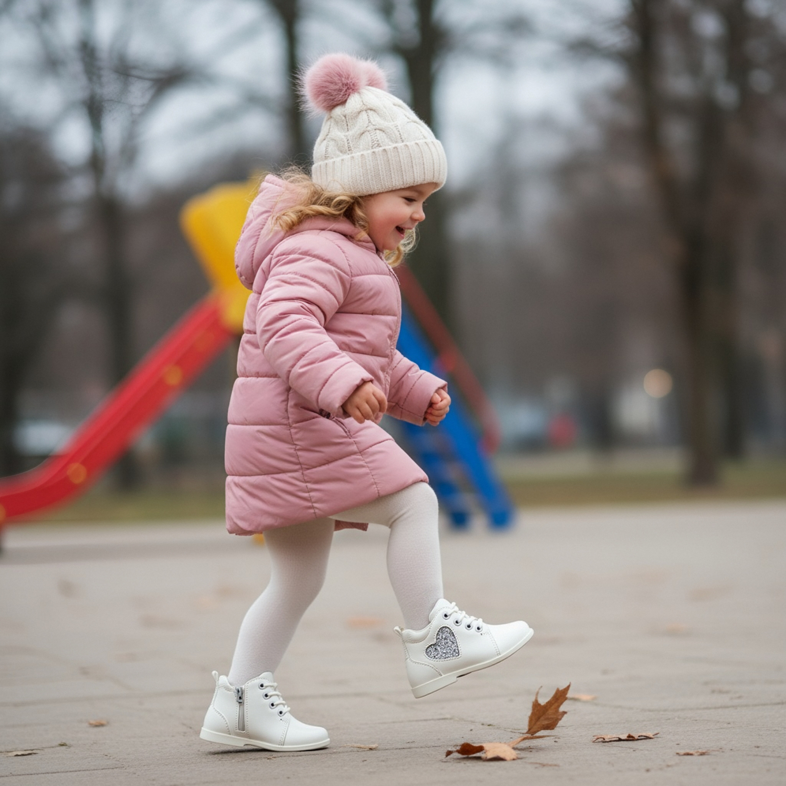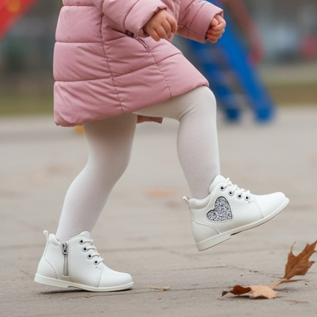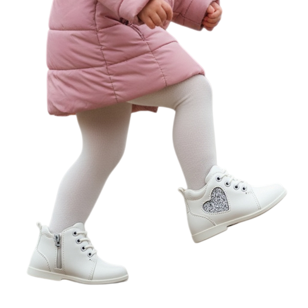 Ghetute pentru fetite cu aplicatii paiete decorative sub forma de inimioara. Sunt extrem de confortabile. Sistemul de inchidere este cu siret si fermoar. Se pot asorta usor cu tinute casual sau elegante.