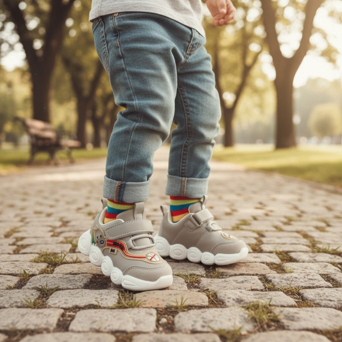Acești pantofi sport sunt alegerea ideală pentru copiii care vor să îmbine confortul cu un design modern. Sunt realizați din material super respirabil, moale și confortabil, absoarbe rapid transpirația. Oferă libertate de mișcare, stabilitate și confort în timpul mișcărilor. Interiorul oferă confort de utilizare. Talpa este ușoară, are o bună aderență, dând astfel un plus de comoditate în timpul mersului.  ​​​