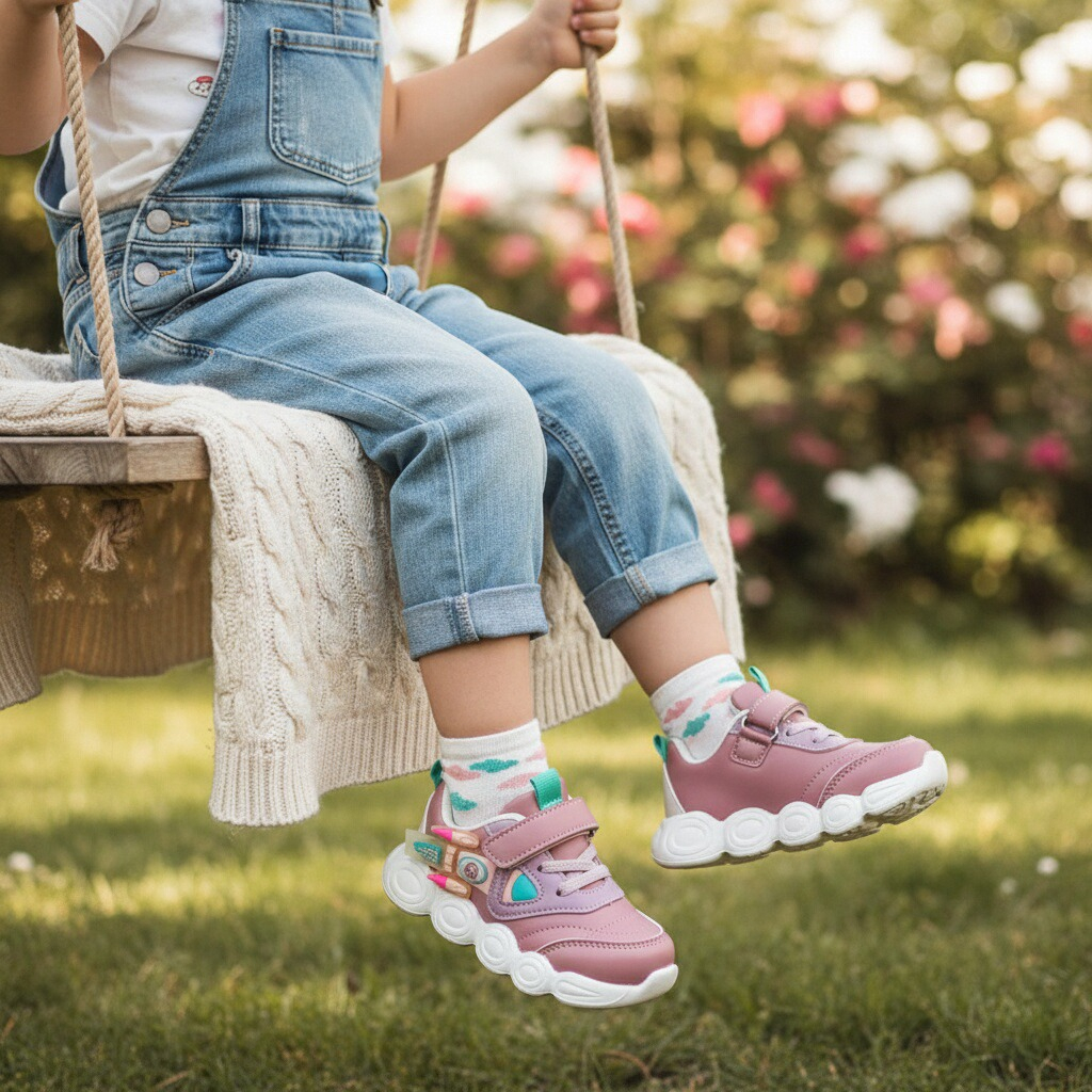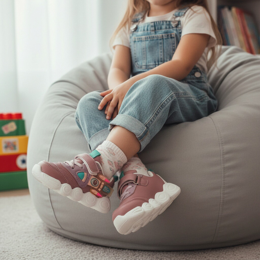 Acești pantofi sport sunt alegerea ideală pentru copiii care vor să îmbine confortul cu un design modern. Sunt realizați din material super respirabil, moale și confortabil, absoarbe rapid transpirația. Oferă libertate de mișcare, stabilitate și confort în timpul mișcărilor. Interiorul oferă confort de utilizare. Talpa este ușoară, are o bună aderență, dând astfel un plus de comoditate în timpul mersului.  ​​​
