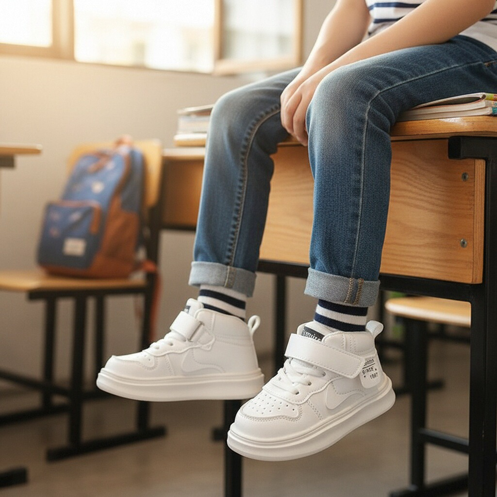 Acești pantofi sport sunt alegerea ideală pentru copiii care vor să îmbine confortul cu un design modern. Sunt realizați din material super respirabil, moale și confortabil, absoarbe rapid transpirația. Oferă libertate de mișcare, stabilitate și confort în timpul mișcărilor. Interiorul oferă confort de utilizare. Talpa este ușoară, are o bună aderență, dând astfel un plus de comoditate în timpul mersului. Pentru o potrivire perfectă și o incălțare facilă, pantofii au sistem de închidere șiret + velcro(scai).    ​​​