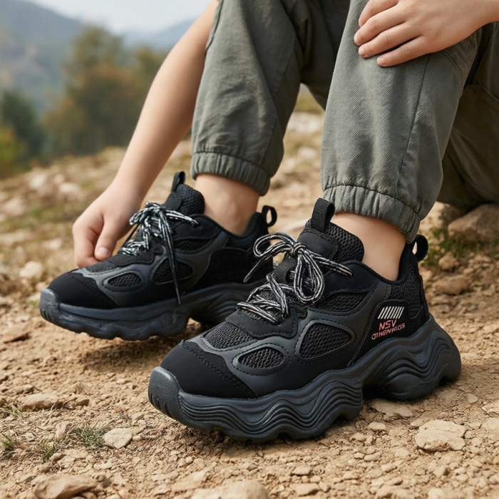 Acești pantofi sport sunt alegerea ideală pentru copiii care vor să îmbine confortul cu un design modern. Sunt realizați din material super respirabil, moale și confortabil, absoarbe rapid transpirația. Oferă libertate de mișcare, stabilitate și confort în timpul mișcărilor. Interiorul oferă confort de utilizare. Talpa este ușoară, are o bună aderență, dând astfel un plus de comoditate în timpul mersului. Pentru o potrivire perfectă și o incălțare facilă, pantofii au sistem de închidere cu șiret.    ​​​