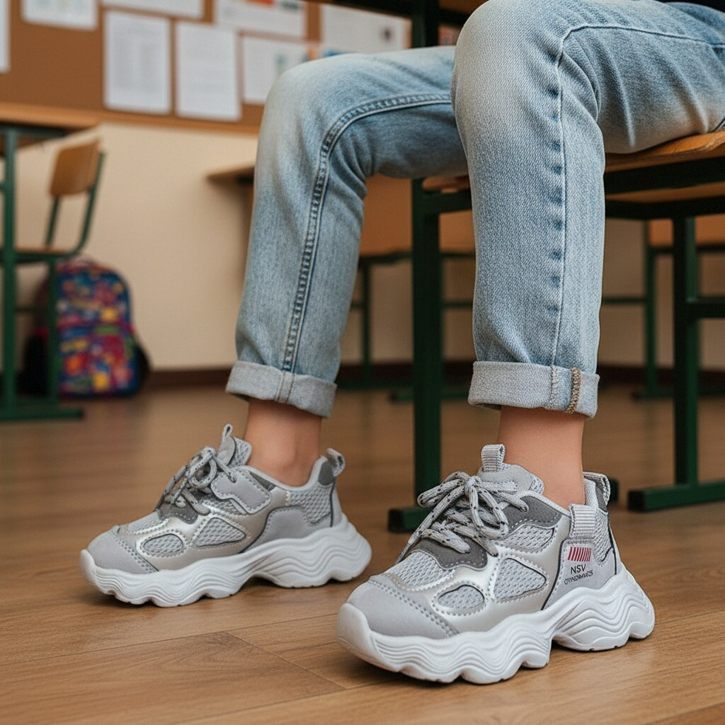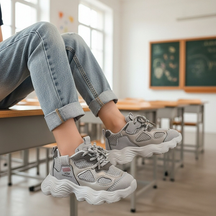 Acești pantofi sport sunt alegerea ideală pentru copiii care vor să îmbine confortul cu un design modern. Sunt realizați din material super respirabil, moale și confortabil, absoarbe rapid transpirația. Oferă libertate de mișcare, stabilitate și confort în timpul mișcărilor. Interiorul oferă confort de utilizare. Talpa este ușoară, are o bună aderență, dând astfel un plus de comoditate în timpul mersului. Pentru o potrivire perfectă și o incălțare facilă, pantofii au sistem de închidere cu șiret.    ​​​