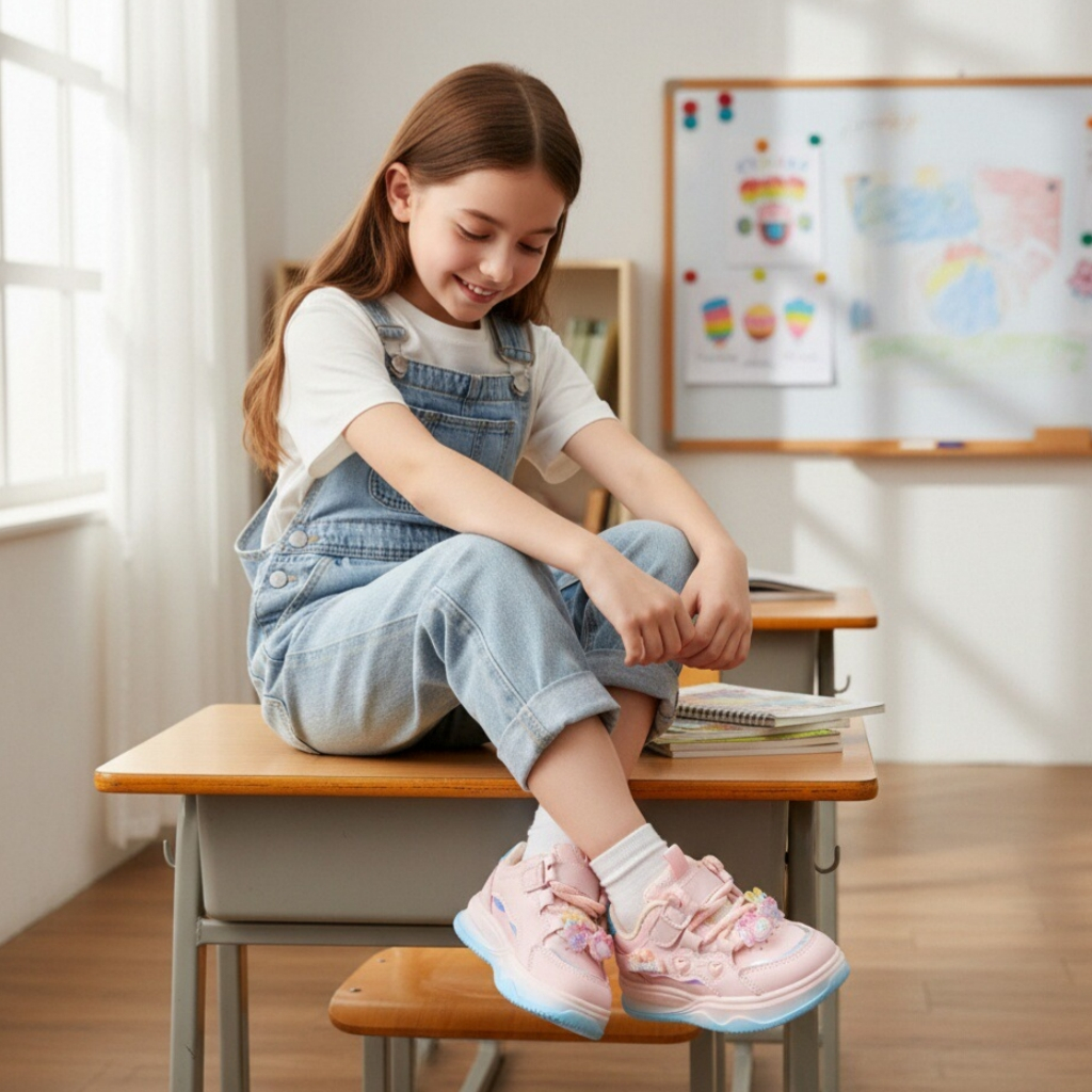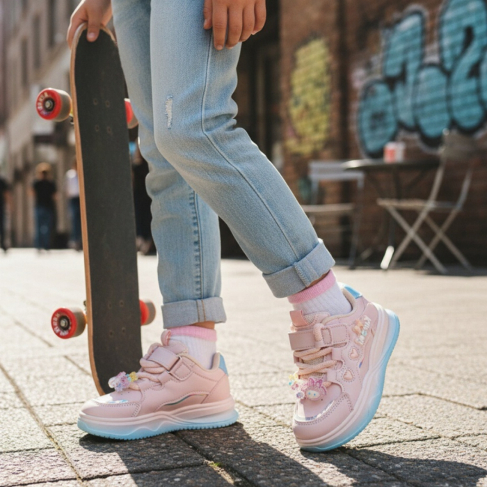 Acești pantofi sport sunt alegerea ideală pentru copiii care vor să îmbine confortul cu un design modern. Sunt realizați din material super respirabil, moale și confortabil, absoarbe rapid transpirația. Oferă libertate de mișcare, stabilitate și confort în timpul mișcărilor. Interiorul oferă confort de utilizare. Talpa este ușoară, are o bună aderență, dând astfel un plus de comoditate în timpul mersului. Pentru o potrivire perfectă și o incălțare facilă, pantofii au sistem de închidere șiret + velcro(scai).   ​​​