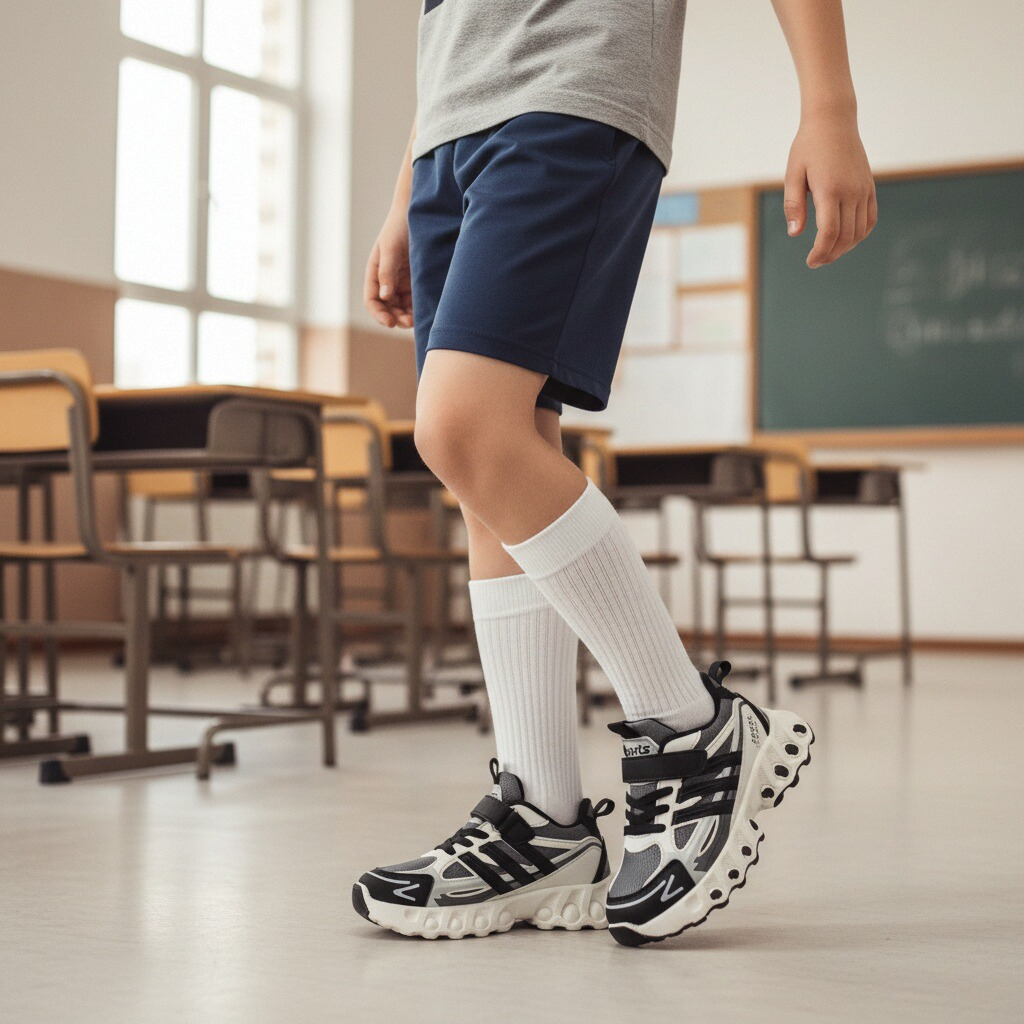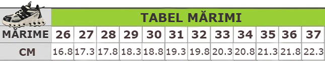 Acești pantofi sport sunt alegerea ideală pentru copiii care vor să îmbine confortul cu un design modern. Sunt realizați din material super respirabil, moale și confortabil, absoarbe rapid transpirația. Oferă libertate de mișcare, stabilitate și confort în timpul mișcărilor. Interiorul oferă confort de utilizare. Talpa este ușoară, are o bună aderență, dând astfel un plus de comoditate în timpul mersului. Pentru o potrivire perfectă și o incălțare facilă, pantofii au sistem de închidere șiret + velcro(scai).  ​​​