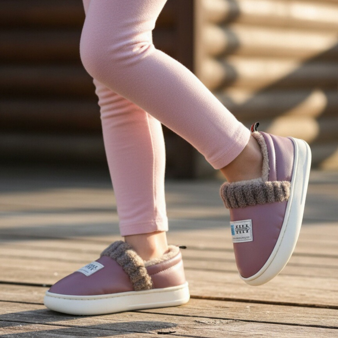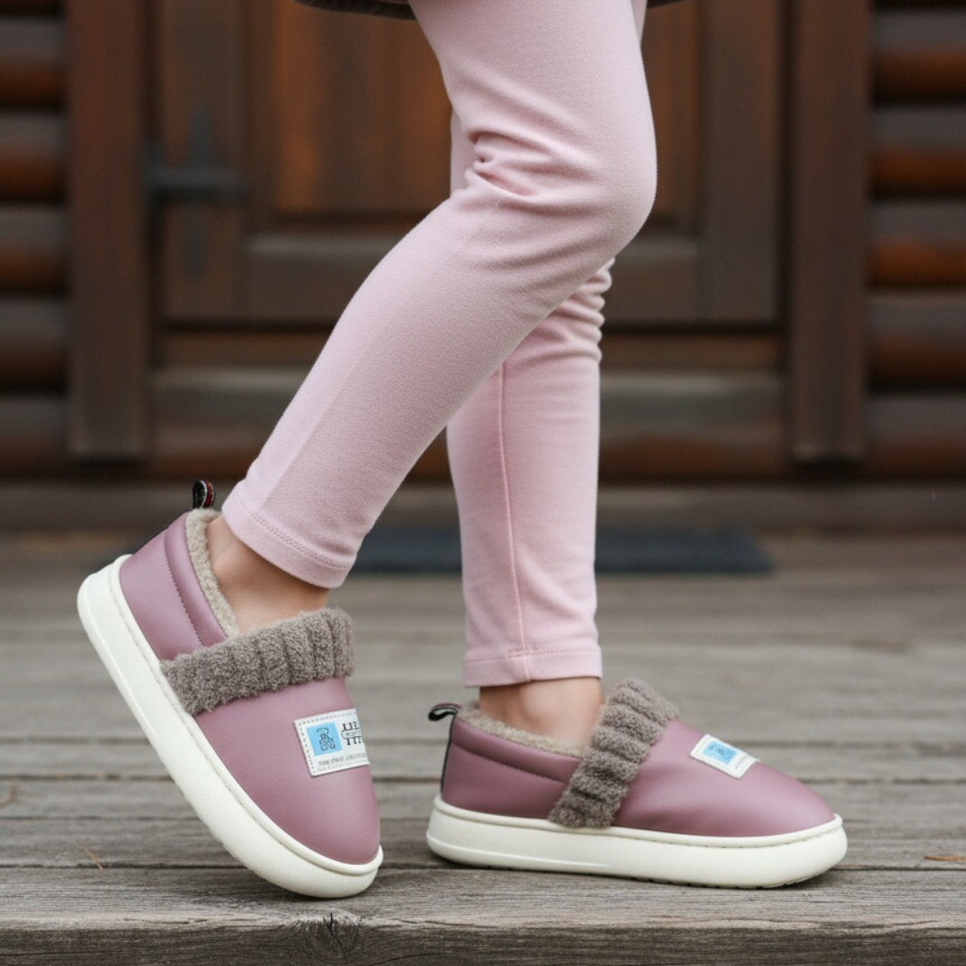 Papuci de casă pufoși și relaxanți, lucrați din materiale moi și călduroase. Sunt alegerea perfectă pentru confort și încălzire.