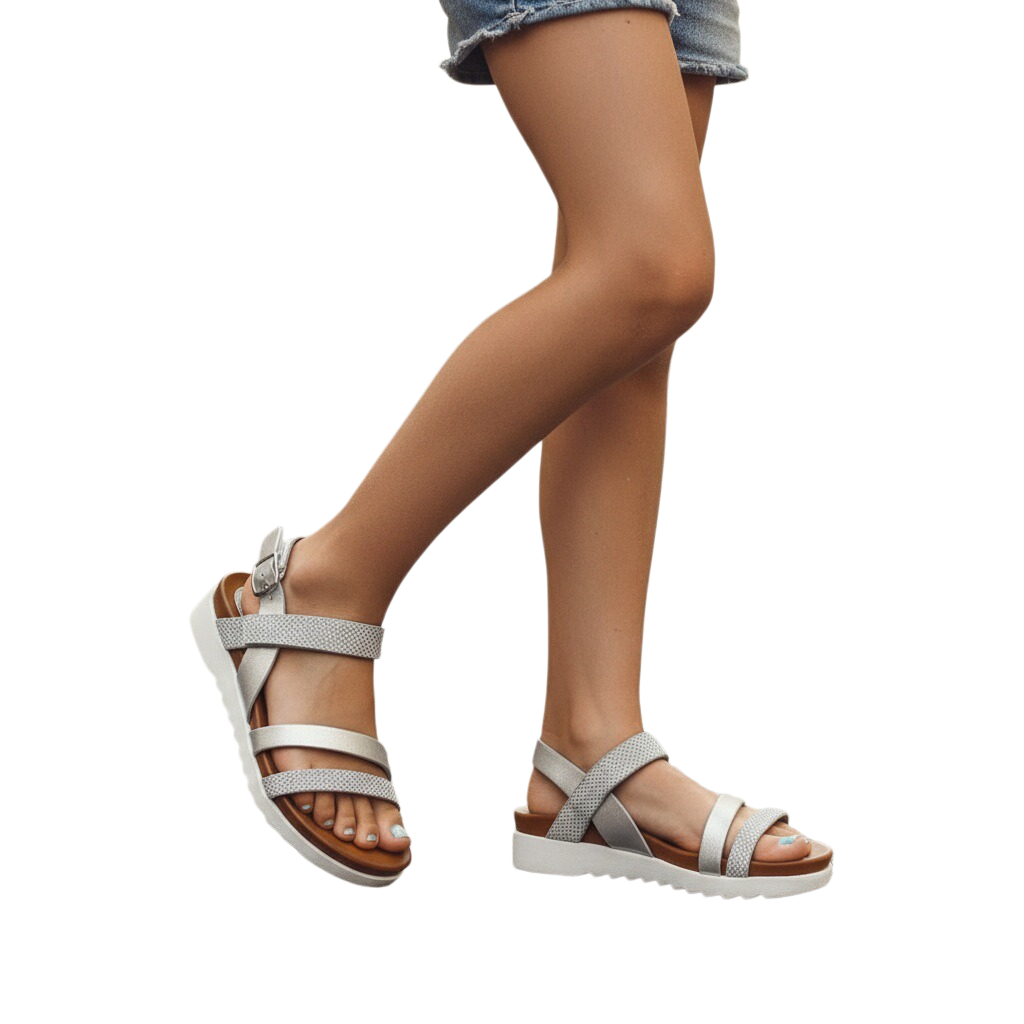 Reînnoiește garderoba fetițelor tale cu aceste sandale din piele ecologică. Aplicațiile decorative și detaliile sclipitoare adaugă o notă de rafinament și originalitate stilului fetiței și va ieși ușor în evidență din mulțime. Sunt o alegere minunată și se pot asorta ușor cu diferite ținute: rochițe, fuste sau blugi scurți.