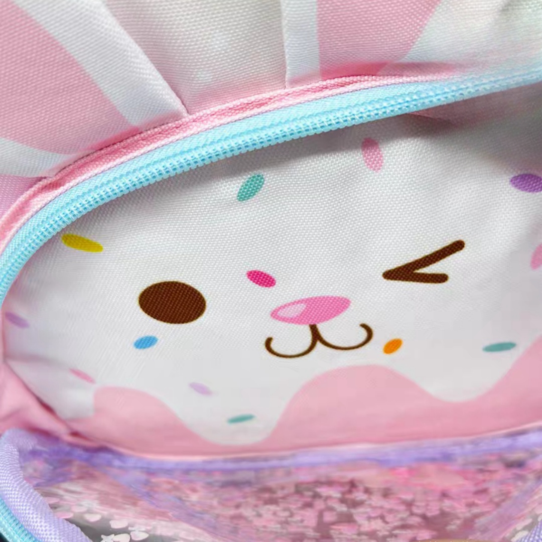 Acest ghiozdan pentru gradinita sau scoala primara cu print vesel 3D ' Iepuras ' este practic, adorabil si perfect pentru aventurile celor mici. Confectionat dintr-un material durabil si calitativ, pentru un confort maxim. Compartimentul principal este prevazut cu un fermoar rezistent si ofera suficient spatiu pentru a transporta carti, caiete, rechizite, obiecte scolare, s.a. Buzunarele laterale elastice sunt ideale pentru transportul sticlelor de apa, umbrelelor sau a obiectelor mici.
