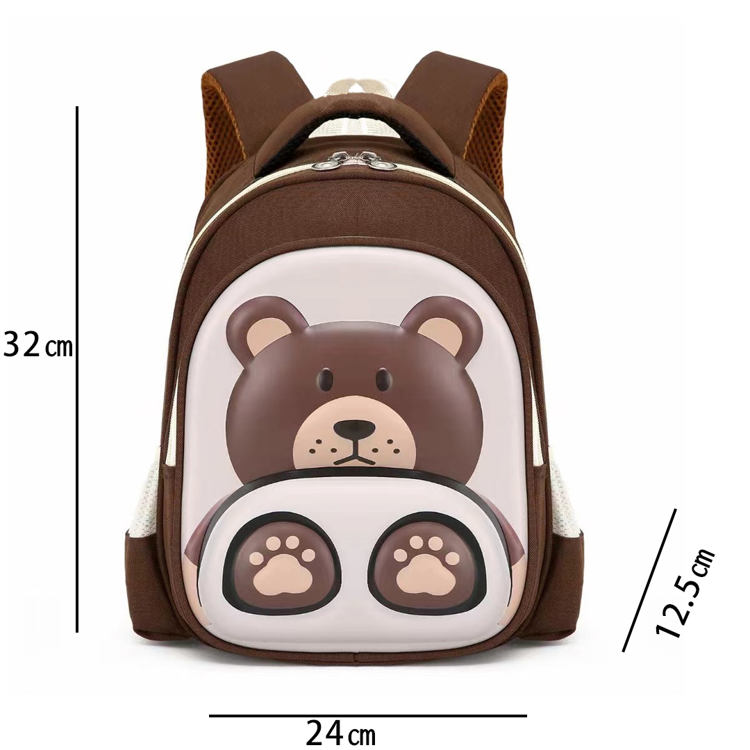 Acest ghiozdan 3D pentru scoala primara cu model urs este practic, adorabil si perfect pentru cei mici. Confectionat dintr-un material durabil si calitativ. Compartimentul principal este prevazut cu un fermoar rezistent si ofera suficient spatiu pentru a transporta carti, caiete, rechizite, obiecte scolare, s.a. In partea din fata gasim inca un compartiment aditional prevazut cu fermoar. Buzunarele laterale elastice sunt ideale pentru transportul sticlelor de apa sau a obiectelor mici.