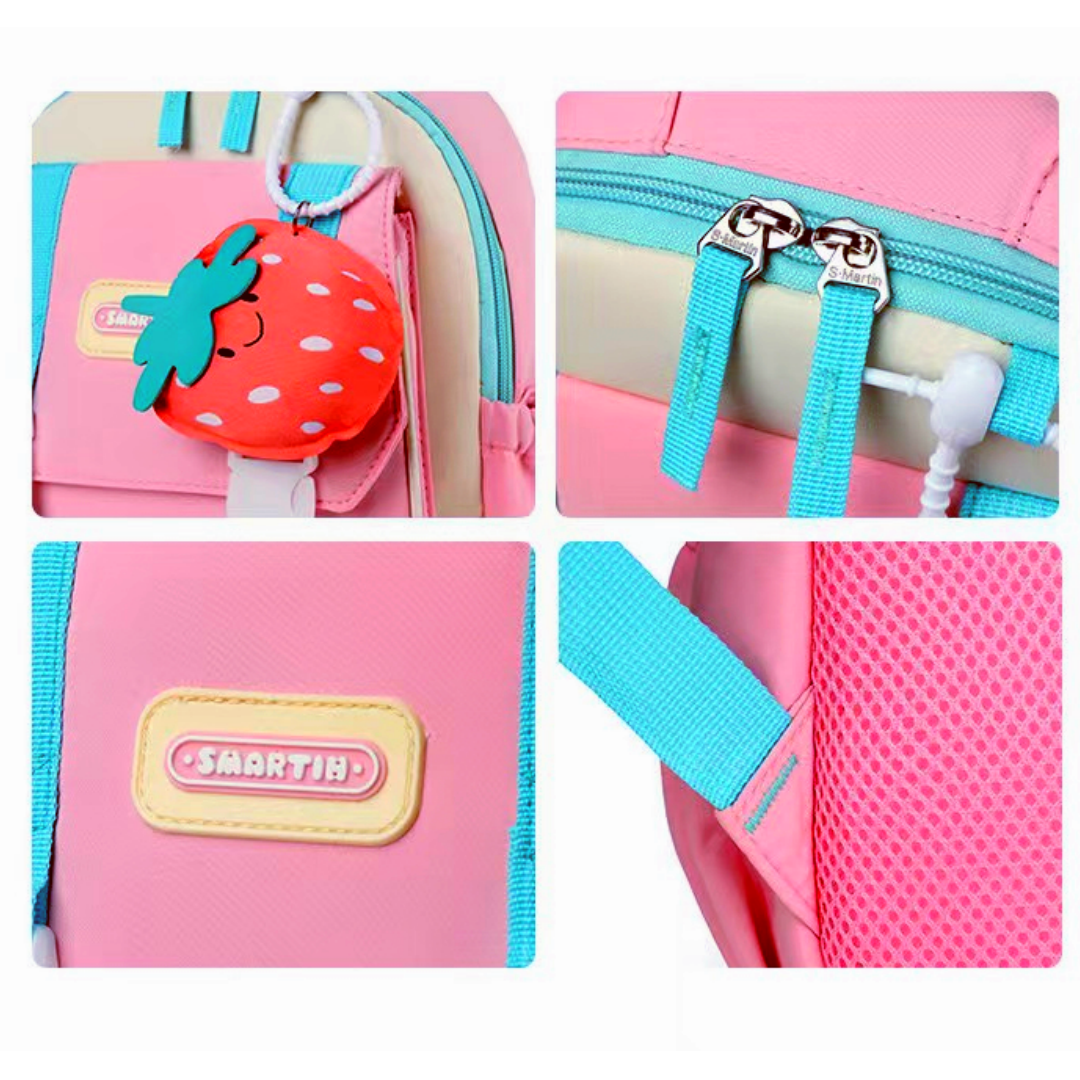 Acest ghiozdan dragut pentru scoala primara este practic, adorabil si perfect pentru cei mici. Combina utilitatea si aspectul adorabil, indiferent daca copilul tau merge la scoala, face un picnic, calatoreste, camping, drumetii sau alte activitati in aer liber. Confectionat dintr-un material durabil, rezistent, calitativ si usor de curatat. Compartimentul principal este prevazut cu un fermoar rezistent si ofera suficient spatiu pentru a transporta carti, caiete, rechizite, obiecte scolare, s.a. In partea din fata gasim inca un compartiment aditional cu sistem inchidere prin catarama. Buzunarele laterale elastice sunt ideale pentru transportul sticlelor de apa sau a obiectelor mici.
