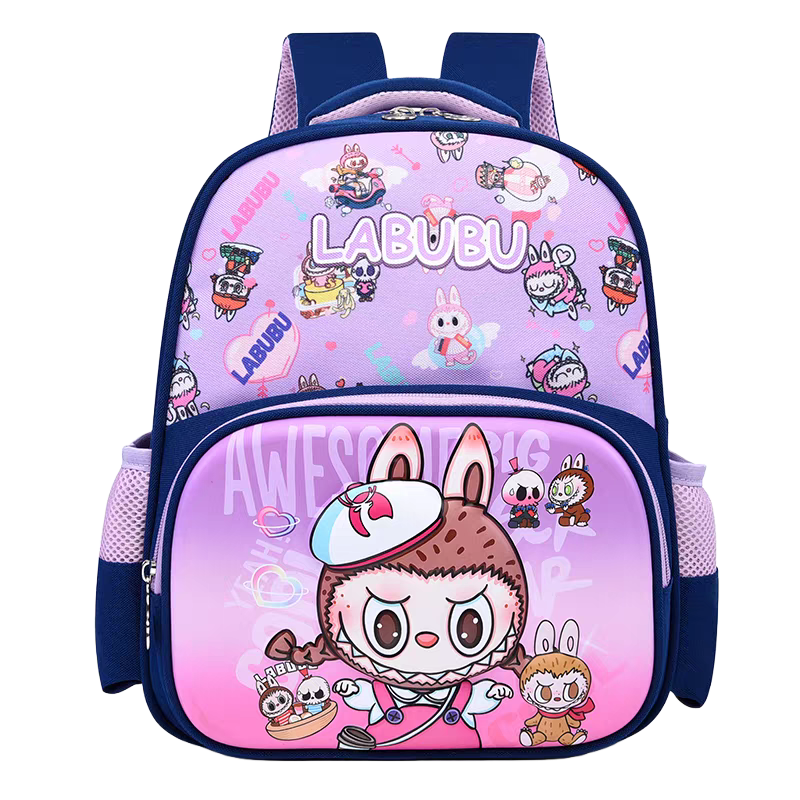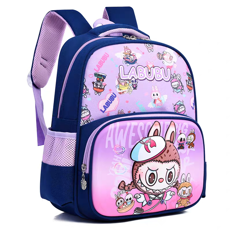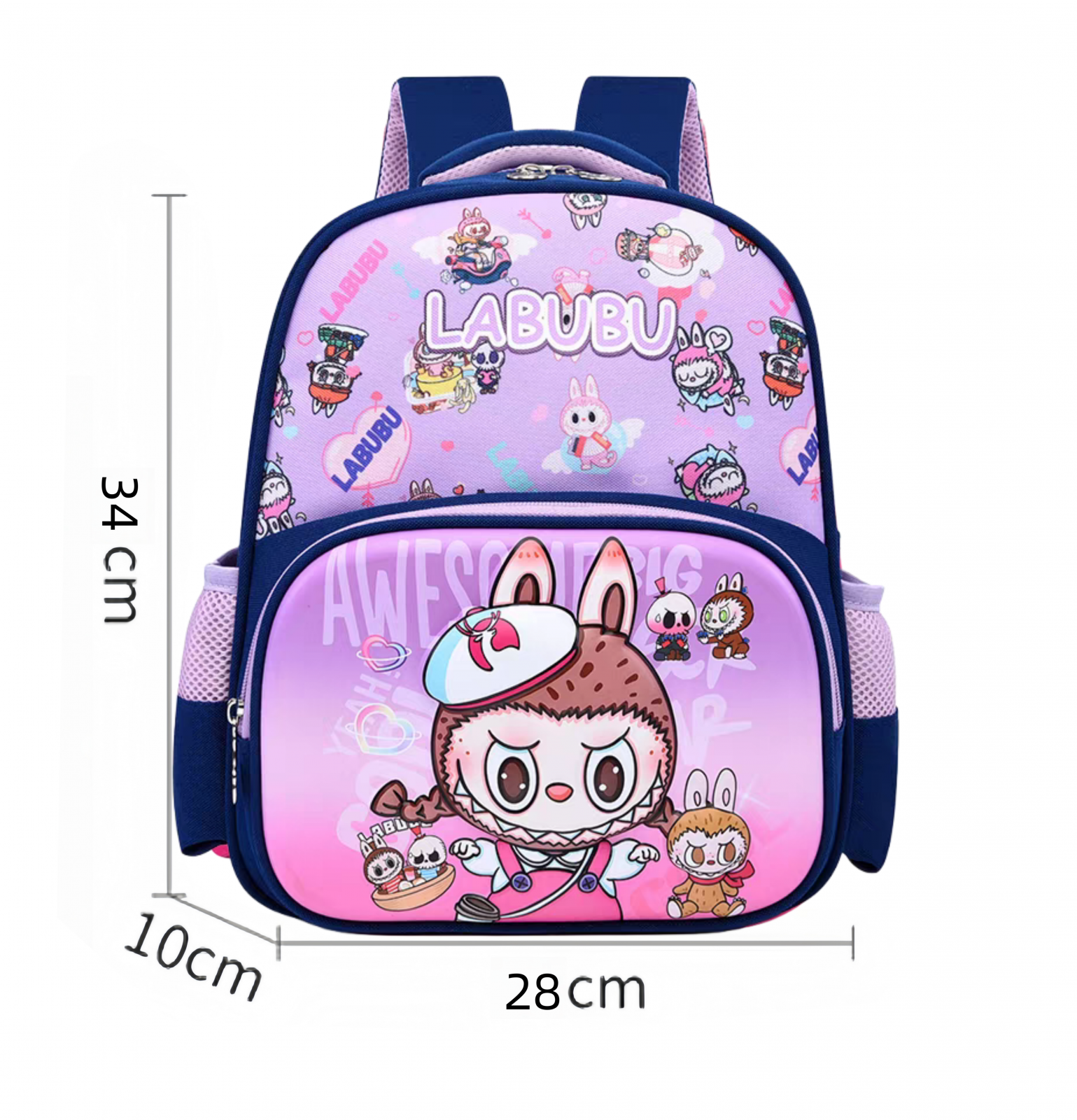 Imprimeu adorabil cu personajul din desene animate Labubu, ghiozdanul se adreseaza direct simtului stilului copiilor mici, fiind mai mult decat functional, ci si la moda;