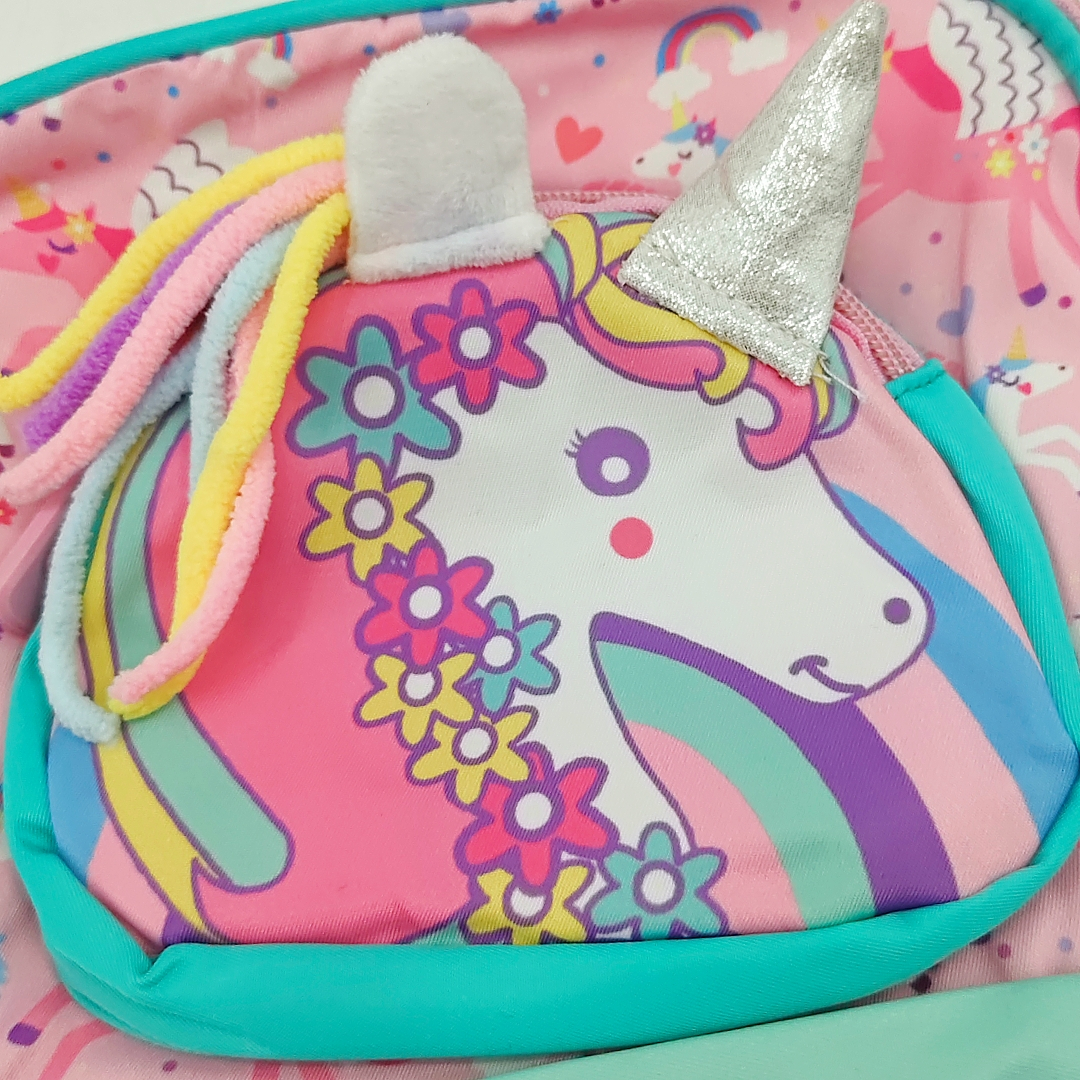 Acest ghiozdan pentru scoala primara cu tematica unicorn este practic, adorabil si perfect pentru cei mici. Confectionat dintr-un material durabil si calitativ. Compartimentul principal este prevazut cu un fermoar rezistent si ofera suficient spatiu pentru a transporta carti, caiete, rechizite, obiecte scolare, s.a. In partea din fata gasim un compartiment aditional prevazut cu fermoar pentru depozitarea obiectelor de dimensiuni mici. Buzunarele laterale elastice sunt ideale pentru transportul sticlelor de apa sau a obiectelor mici.