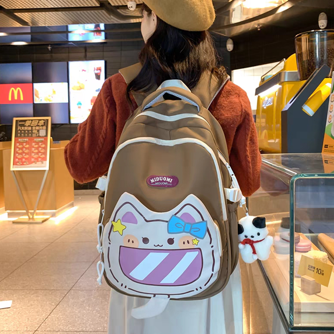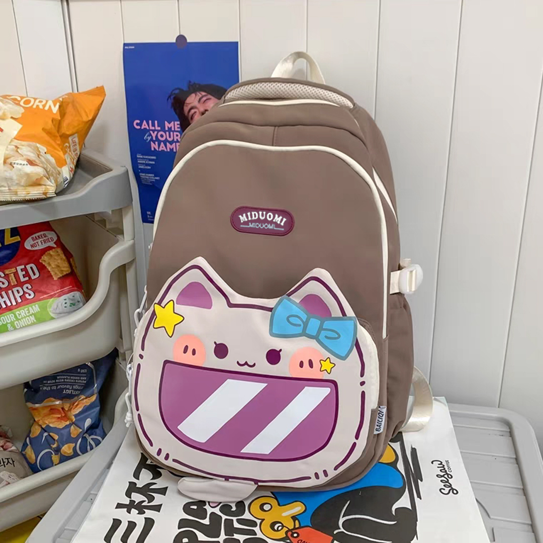 Acest rucsac spatios cu model vesel pisica din desene animate este perfect pentru a fi luat la scoala, serviciu, sau in calatorii, este practic si are un aspect foarte placut din punct de vedere estetic. Confectionat dintr-un material durabil si calitativ. Are un compartiment principal prevazut cu fermoar rezistent si ofera suficient spatiu pentru a transporta carti, caiete, rechizite, obiecte scolare, ipad, laptop, s.a. In partea din fata gasim un compartiment aditional spatios prevazut cu fermoar si inca un compartiment suplimentar in partea de jos, prevazut cu fermoar. Buzunarele laterale sunt ideale pentru transportul sticlelor de apa, umbrelelor, sau a obiectelor mici.