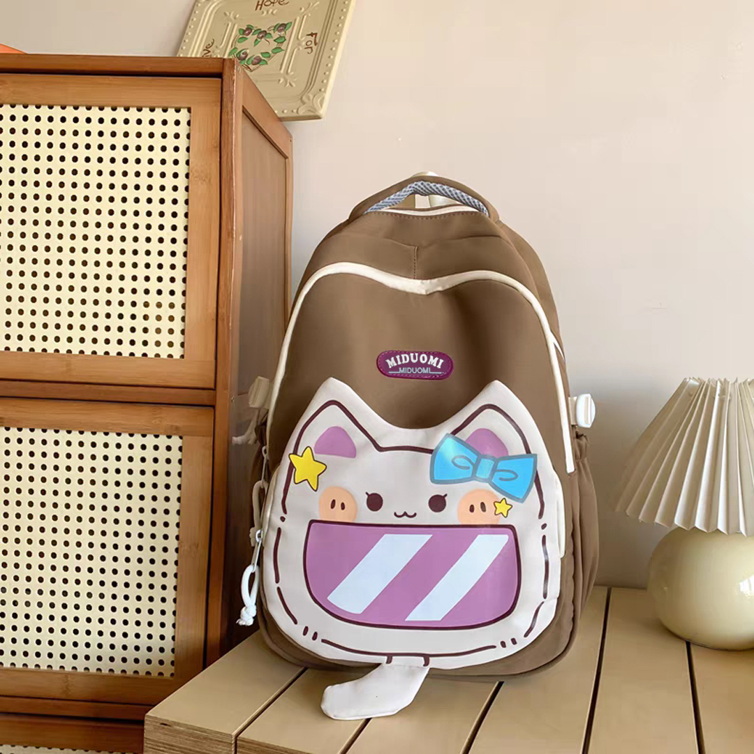 Ghiozdan/rucsac cu model pisica pentru scoala sau calatorii ZY-56128maro