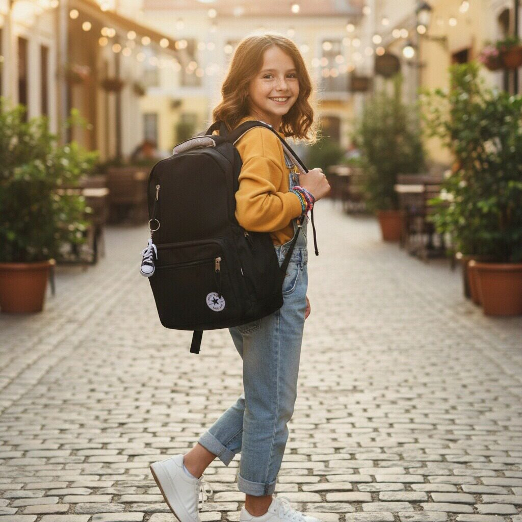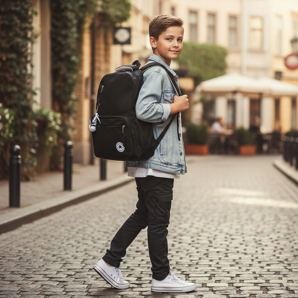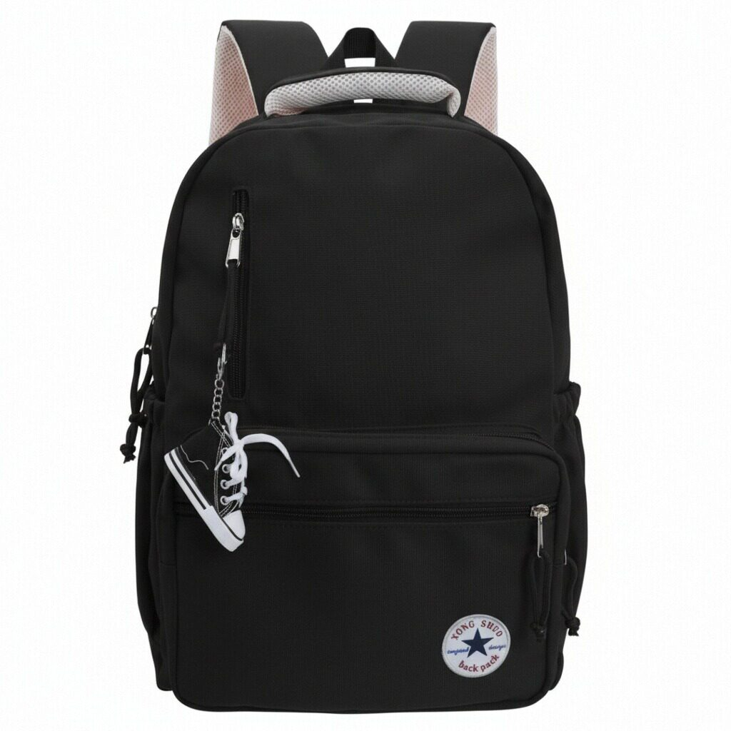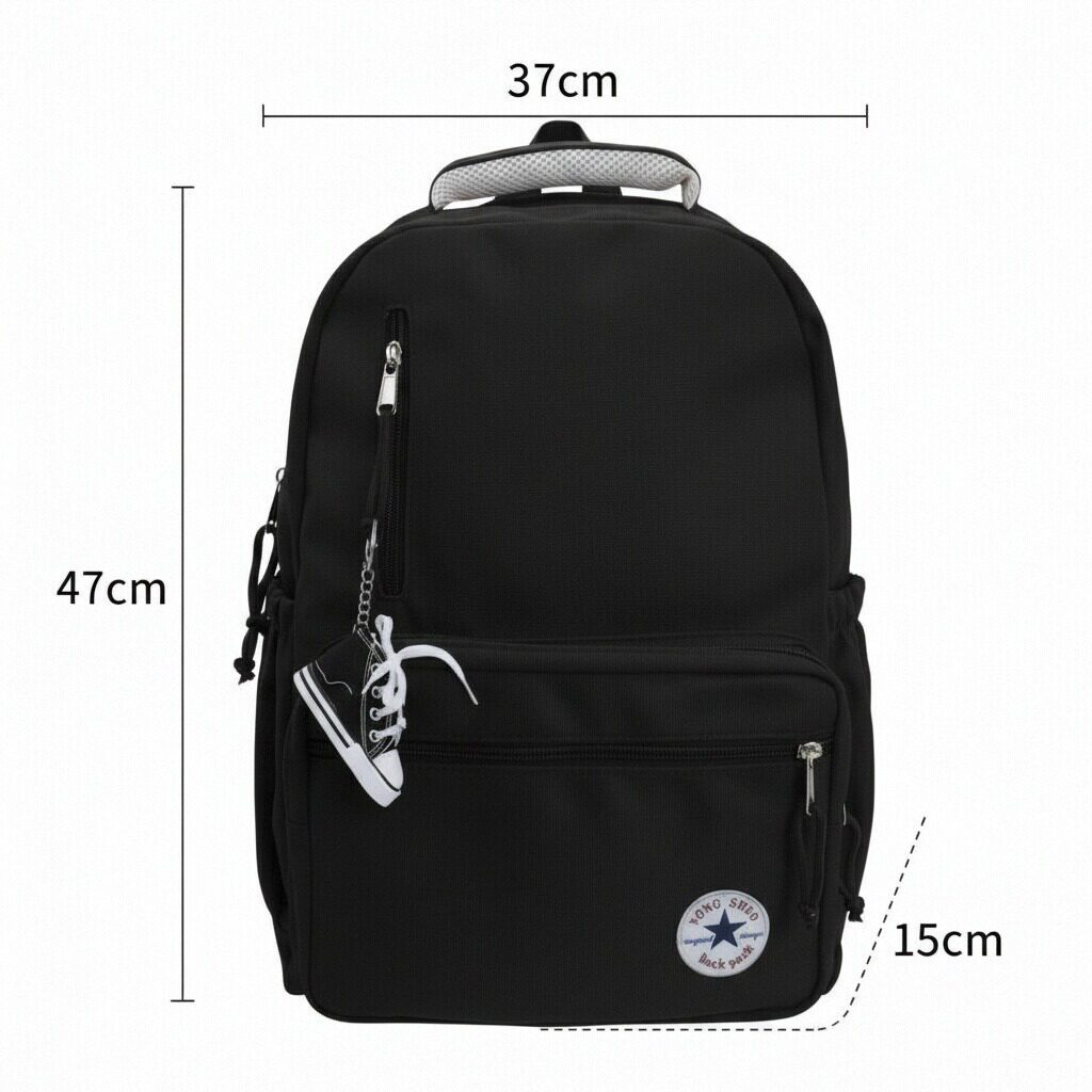 Acest rucsac spatios este perfect pentru a fi luat la scoala, serviciu, sau in calatorii, este practic si are un aspect foarte placut din punct de vedere estetic. Confectionat dintr-un material durabil si calitativ. Are un compartiment principal prevazut cu fermoar rezistent si ofera suficient spatiu pentru a transporta carti, caiete, rechizite, obiecte scolare, ipad, laptop, s.a. In partea din fata gasim trei compartimente aditionale prevazute cu fermoar. In partea din spate gasim inca un compartiment aditional prevazut cu fermoar si accesoriul care permite atasarea acestuia la un troler. Buzunarele laterale sunt ideale pentru transportul sticlelor de apa, umbrelelor, sau a obiectelor mici.