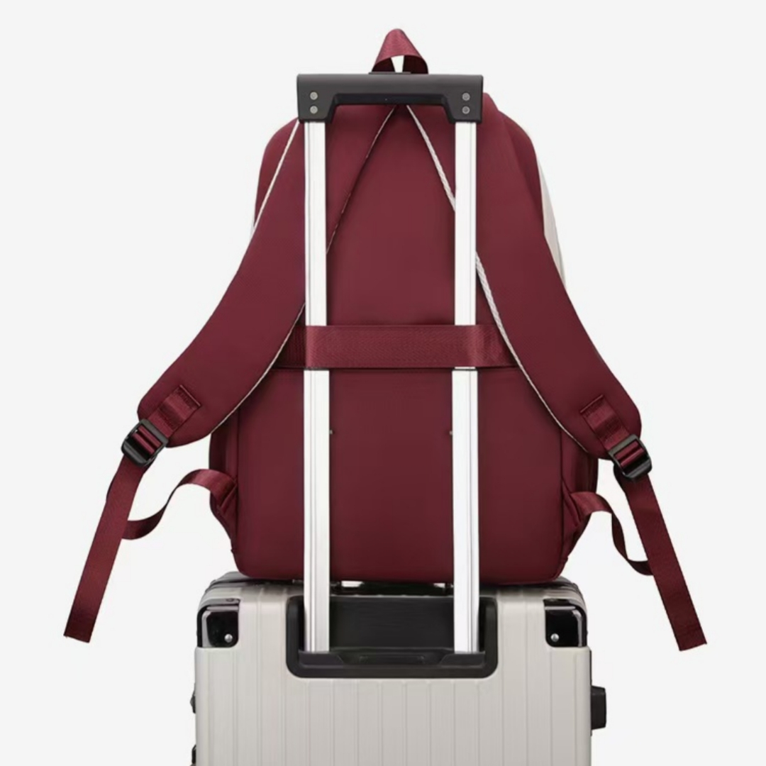 Acest rucsac spatios este perfect pentru a fi luat la scoala, serviciu, sau in calatorii, este practic si are un aspect foarte placut din punct de vedere estetic. Confectionat dintr-un material durabil si calitativ. Are un compartiment principal prevazut cu fermoar rezistent si ofera suficient spatiu pentru a transporta carti, caiete, rechizite, obiecte scolare, ipad, laptop, s.a. In partea din fata gasim trei compartimente aditionale, doua dintre ele prevazute cu fermoar, pentru obiectele care dorim sa le avem mai mereu la indemana. In partea din spate gasim accesoriul care permite atasarea acestuia la un troler si inca un compartiment suplimentar. Buzunarele laterale sunt ideale pentru transportul sticlelor de apa, umbrelelor, sau a obiectelor mici.