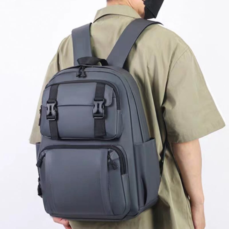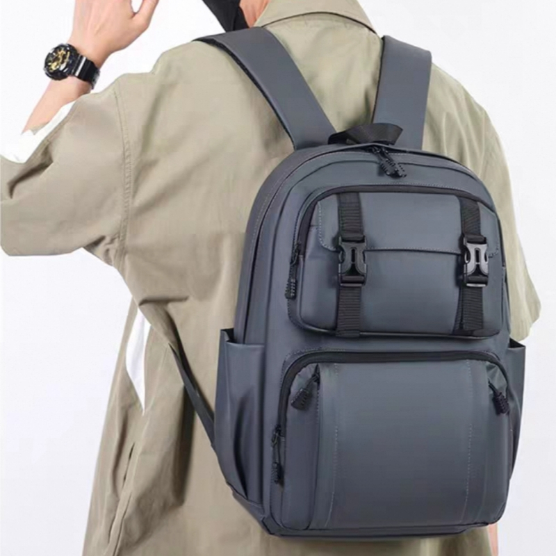Acest rucsac spatios este perfect pentru a fi luat la scoala, serviciu, sau in calatorii, este practic si are un aspect foarte placut din punct de vedere estetic. Confectionat dintr-un material durabil si calitativ. Are un compartiment principal prevazut cu fermoar rezistent si ofera suficient spatiu pentru a transporta carti, caiete, rechizite, obiecte scolare, ipad, laptop, s.a. In partea din fata gasim patru compartimente aditionale prevazute cu fermoar si un compartiment aditional cu sistem inchidere prin catarama, pentru obiectele care dorim sa le avem mai mereu la indemana. In partea din spate gasim accesoriul care permite atasarea acestuia la un troler. Buzunarele laterale sunt ideale pentru transportul sticlelor de apa, umbrelelor, sau a obiectelor mici.