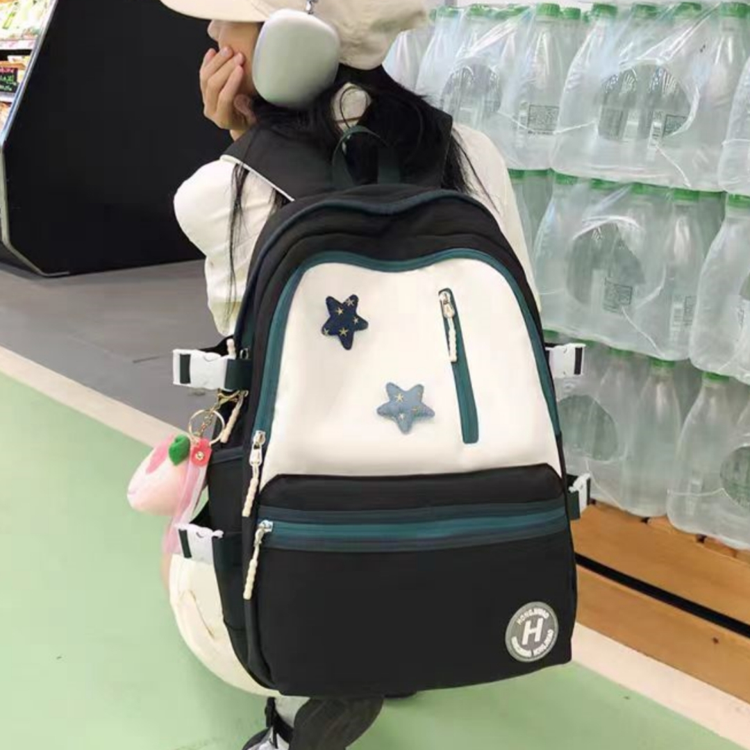 Acest rucsac spatios este perfect pentru a fi luat la scoala, serviciu, sau in calatorii, este practic si are un aspect foarte placut din punct de vedere estetic. Confectionat dintr-un material durabil si calitativ. Are un compartiment principal prevazut cu fermoar rezistent si ofera suficient spatiu pentru a transporta carti, caiete, rechizite, obiecte scolare, ipad, laptop, s.a. In partea din fata gasim mai multe compartimente aditionale prevazute cu fermoar, pentru depozitarea obiectelor de dimensiuni mici sau medii. Buzunarele laterale sunt ideale pentru transportul sticlelor de apa, umbrelelor, sau a obiectelor mici.