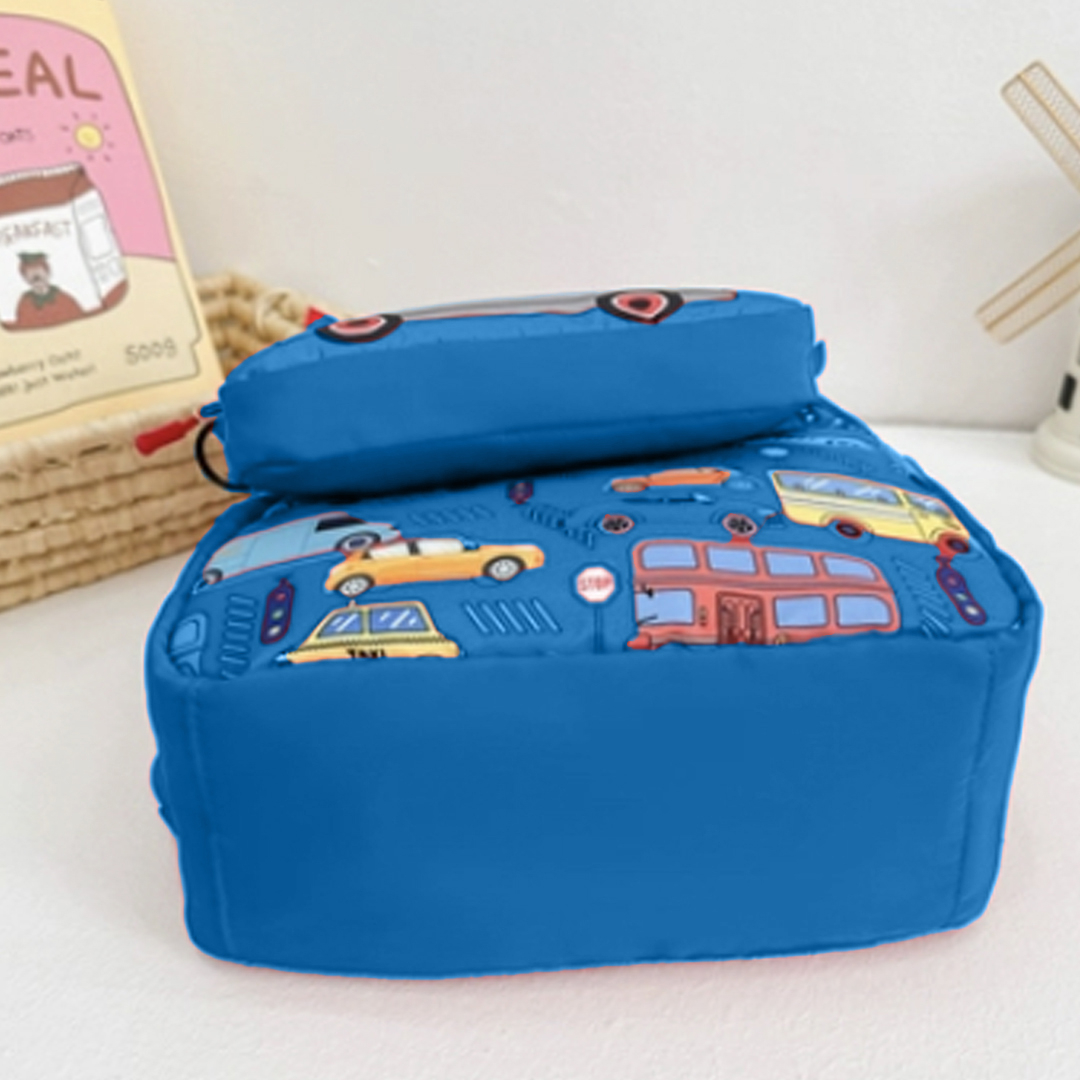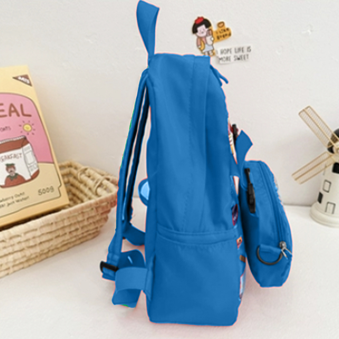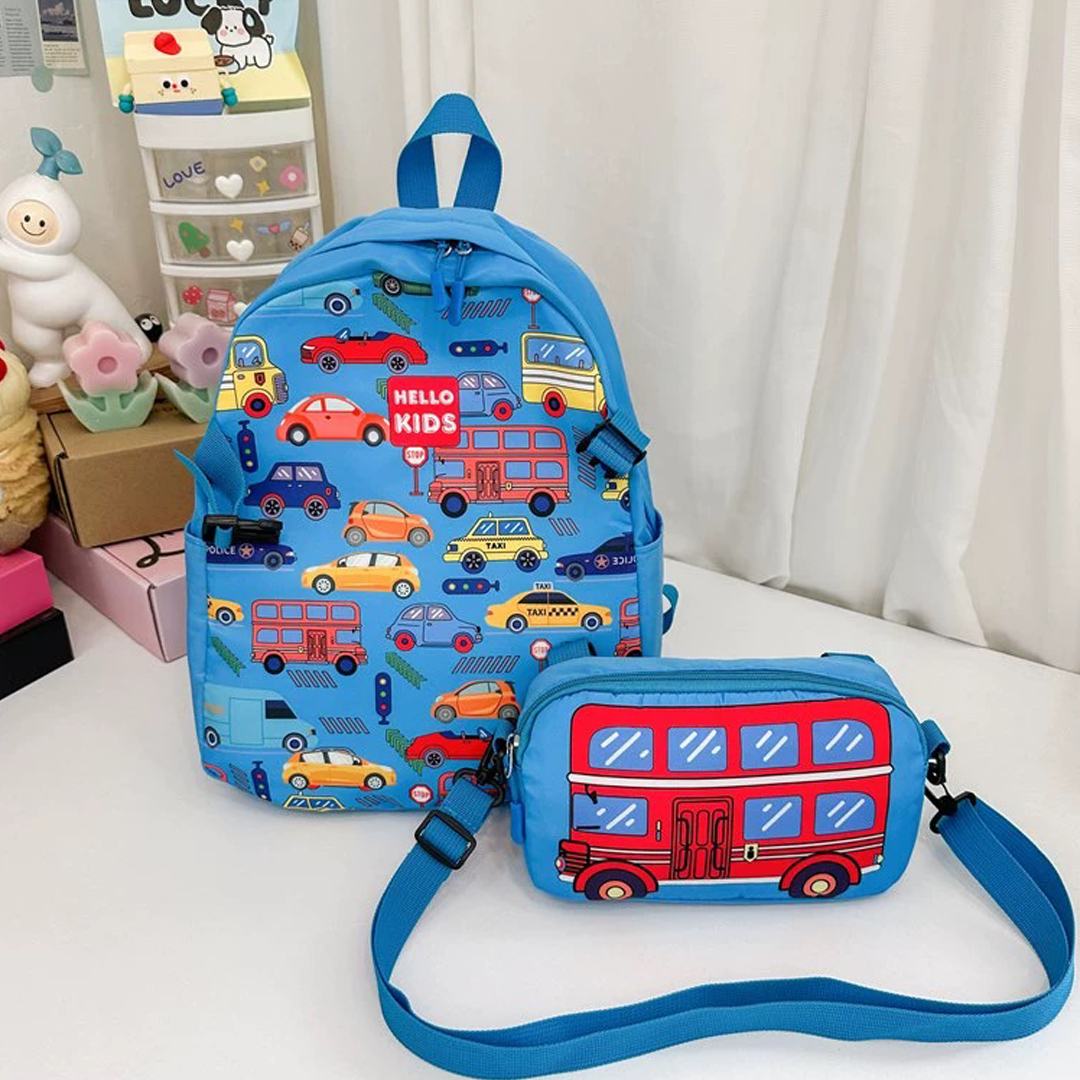 Acest set 2 in 1 cu ghiozdan si gentuta mica de umar pentru gradinita sau scoala primara cu print vesel este practic, adorabil si perfect pentru cei mici. Gentuta este atasata cu catarame. Cureaua reglabila si detasabila de umar va permite sa reglati cu usurinta lungimea. Confectionat dintr-un material durabil si calitativ. Compartimentul principal al ghiozdanului este prevazut cu doua fermoare rezistente si ofera suficient spatiu pentru a transporta carti, caiete, rechizite, obiecte scolare, s.a. Buzunarele laterale elastice sunt ideale pentru transportul sticlelor de apa sau a obiectelor mici. Gentuta de umar are un compartiment principal prevazut cu fermoar si se pot depozita obiecte de dimensiuni mici.