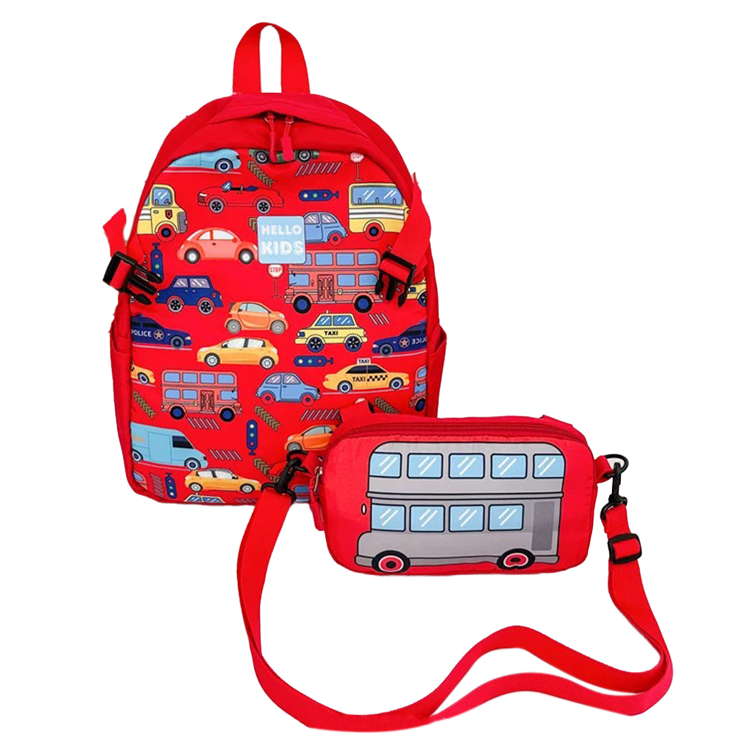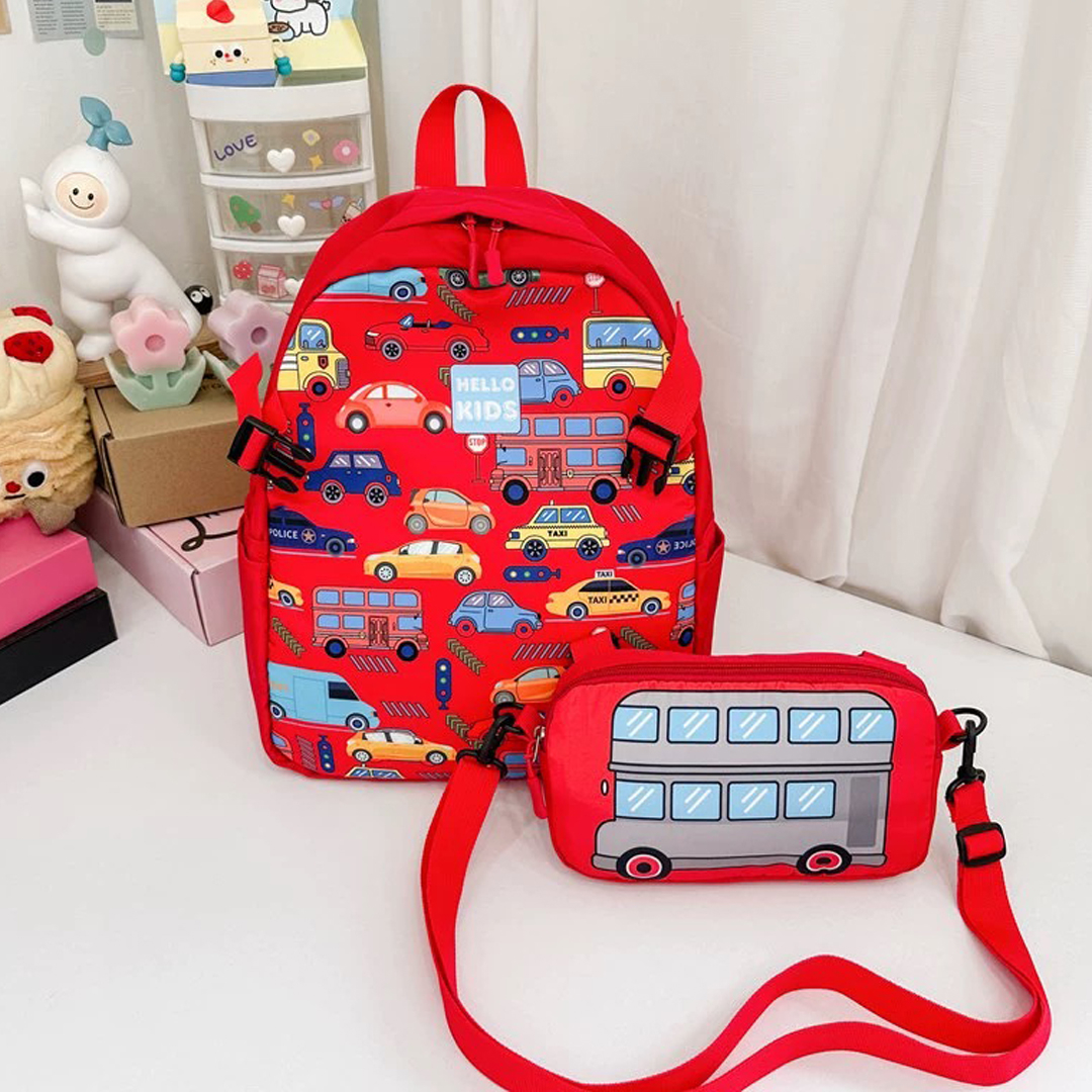 Acest set 2 in 1 cu ghiozdan si gentuta mica de umar pentru gradinita sau scoala primara cu print vesel este practic, adorabil si perfect pentru cei mici. Gentuta este atasata cu catarame. Cureaua reglabila si detasabila de umar va permite sa reglati cu usurinta lungimea. Confectionat dintr-un material durabil si calitativ. Compartimentul principal al ghiozdanului este prevazut cu doua fermoare rezistente si ofera suficient spatiu pentru a transporta carti, caiete, rechizite, obiecte scolare, s.a. Buzunarele laterale elastice sunt ideale pentru transportul sticlelor de apa sau a obiectelor mici. Gentuta de umar are un compartiment principal prevazut cu fermoar si se pot depozita obiecte de dimensiuni mici.