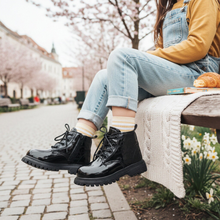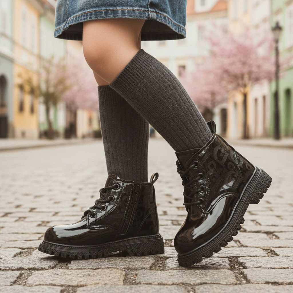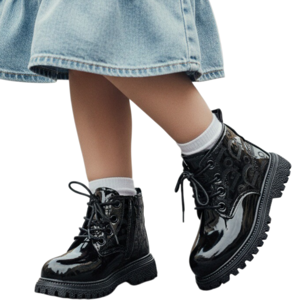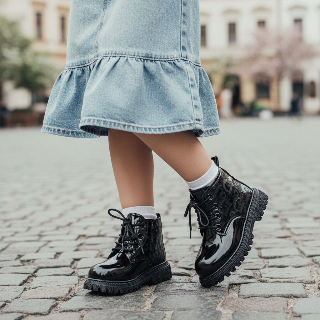 Aceste ghete pline de farmec sunt o alegere versatilă pentru cei mici. Emană un stil rafinat și sunt ușor de asortat cu diverse ținute vestimentare. Platforma ușor înaltă, realizată din cauciuc antiderapant, oferă susținere și amortizare, permițându-le copiilor să se miște cu lejeritate și încredere în timpul deplasărilor.