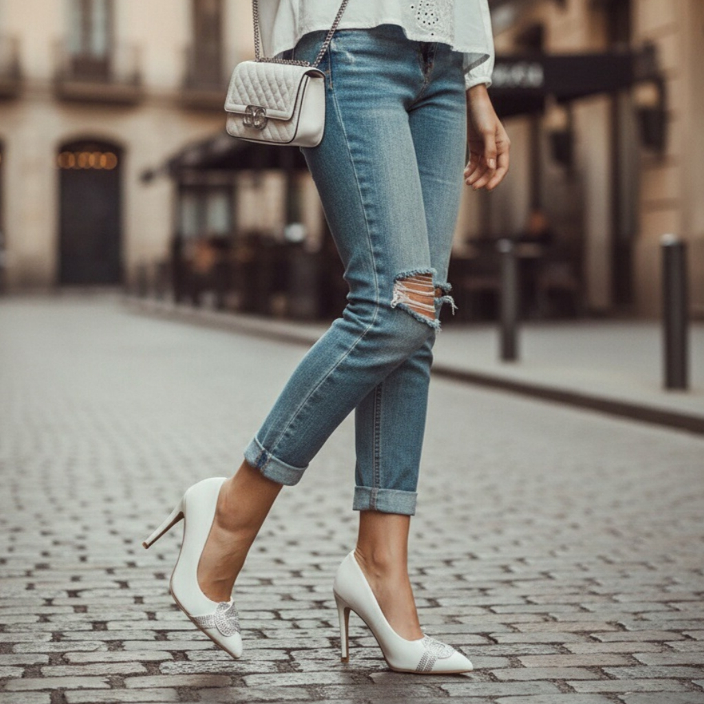 Pantofi eleganti cu toc FX-6alb